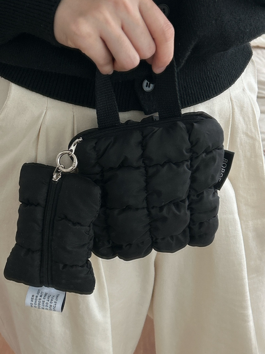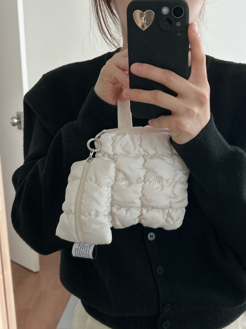 한국의 새로운 주름진 거품 누비 격자 무늬 화장품 가방 휴대용 립스틱 파우더 아이 섀도우 카드 가방 보관스토어 가기