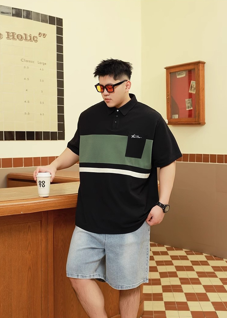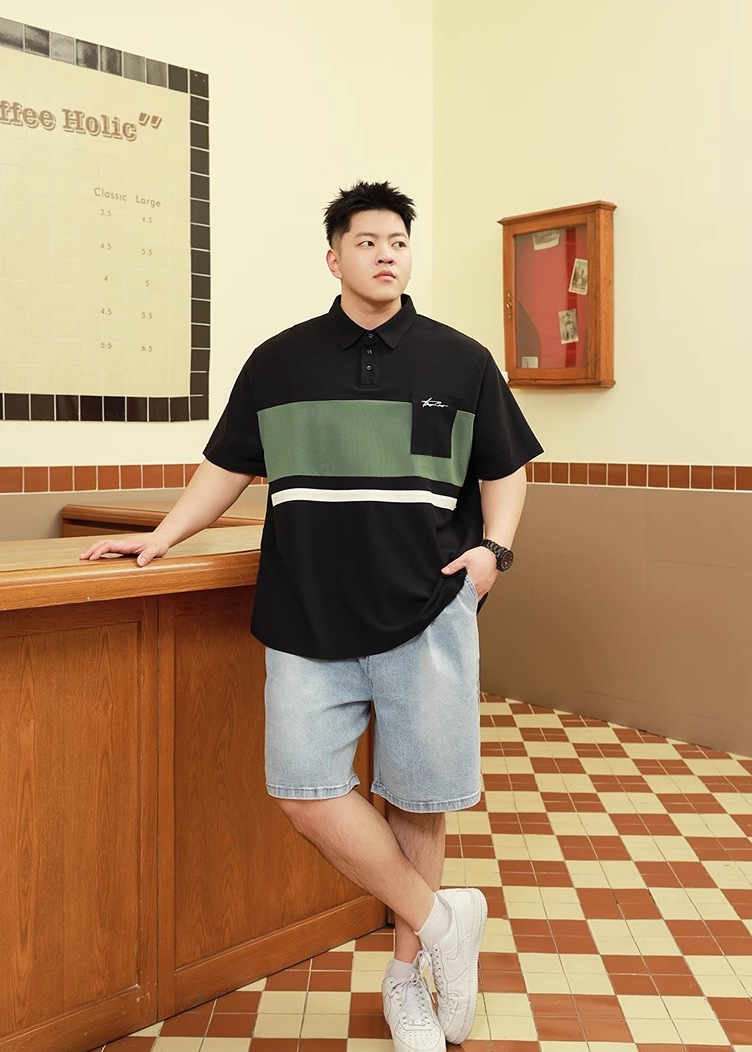 트렌디 브랜드 플러스 사이즈 남성 반팔 여름 신작 뚱뚱한 남성용 플러스 사이즈 반팔 티셔츠 스플라이스 자수 폴로 셔츠스토어 가기