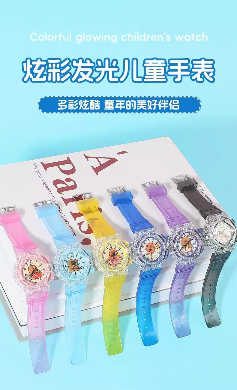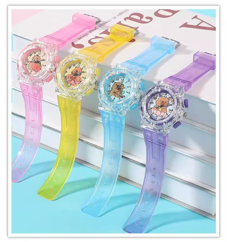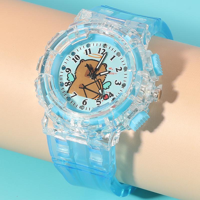 만화 어린이 시계 귀여운 Kapibara 쿼츠 시계 소년과 소녀를위한 빛나는 손목 시계와 투명 전자 시계 선물