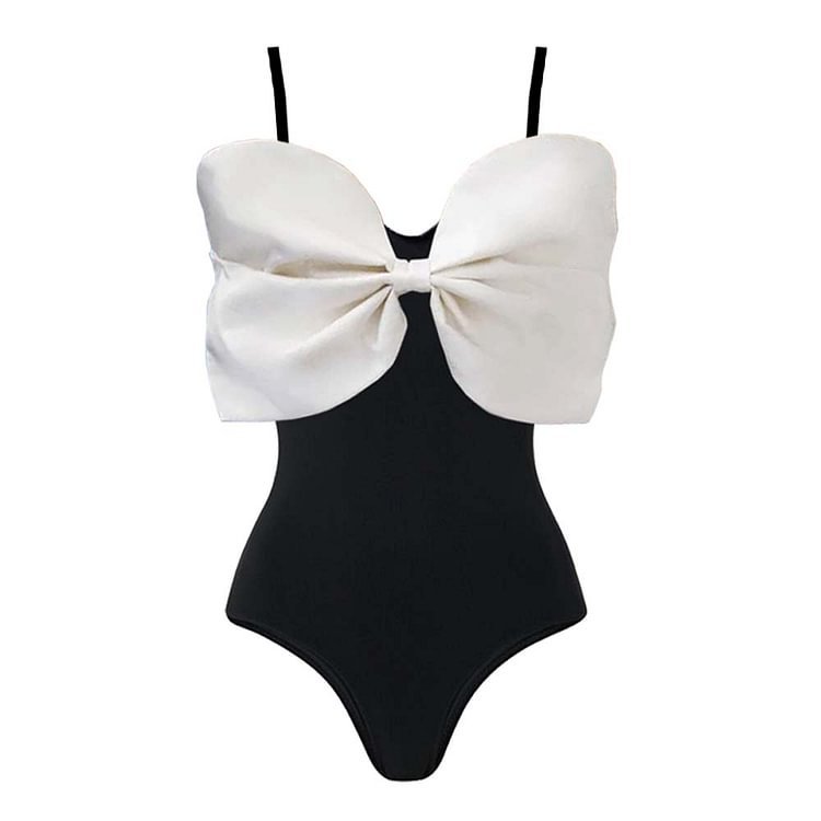 유럽과 미국의 새로운 원피스 수영복, 여성스럽고 보수적인 서스펜더 솔리드 컬러 보우 원피스, 여성용 비치 크로스보더 수영복