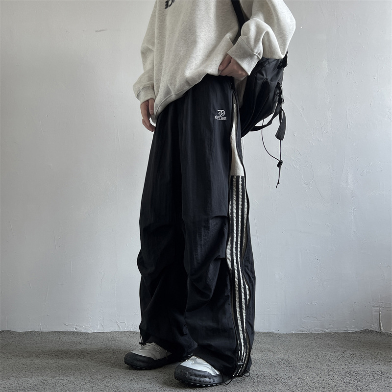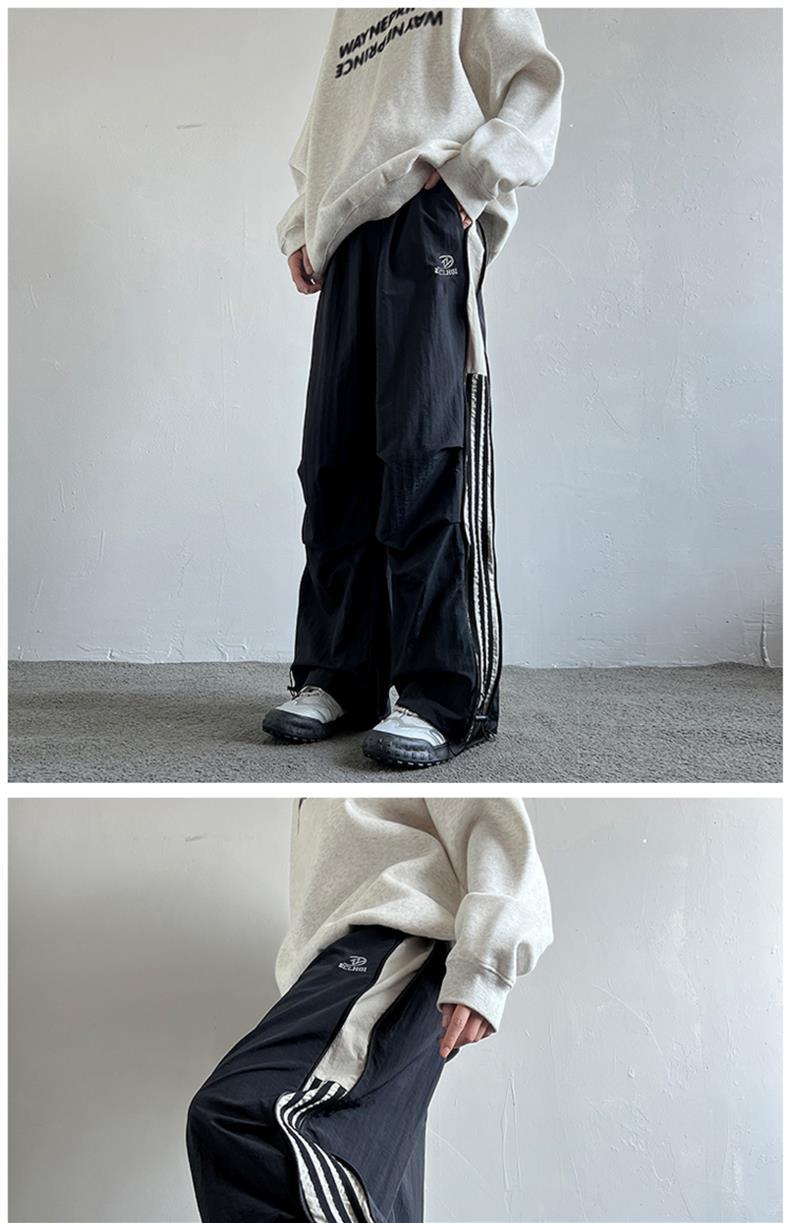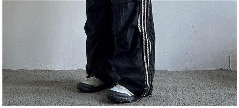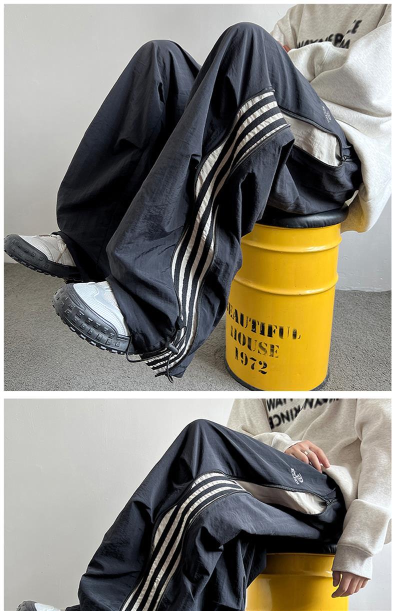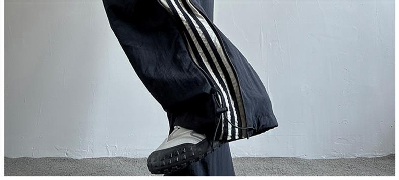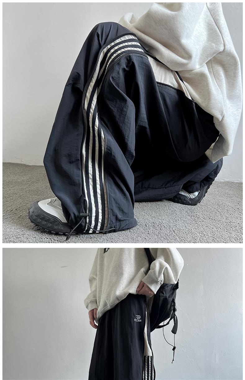 아메리칸 스포츠 지퍼 3줄 스트라이프 공수 바지 남성 가을 신작 트렌디 브랜드 하이 스트리트 루즈 캐주얼 속건성 충전 바지