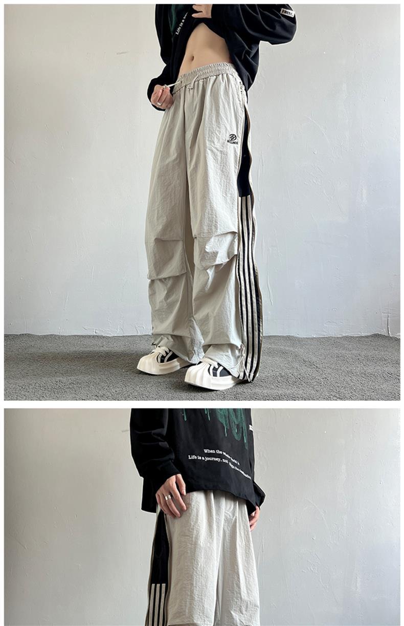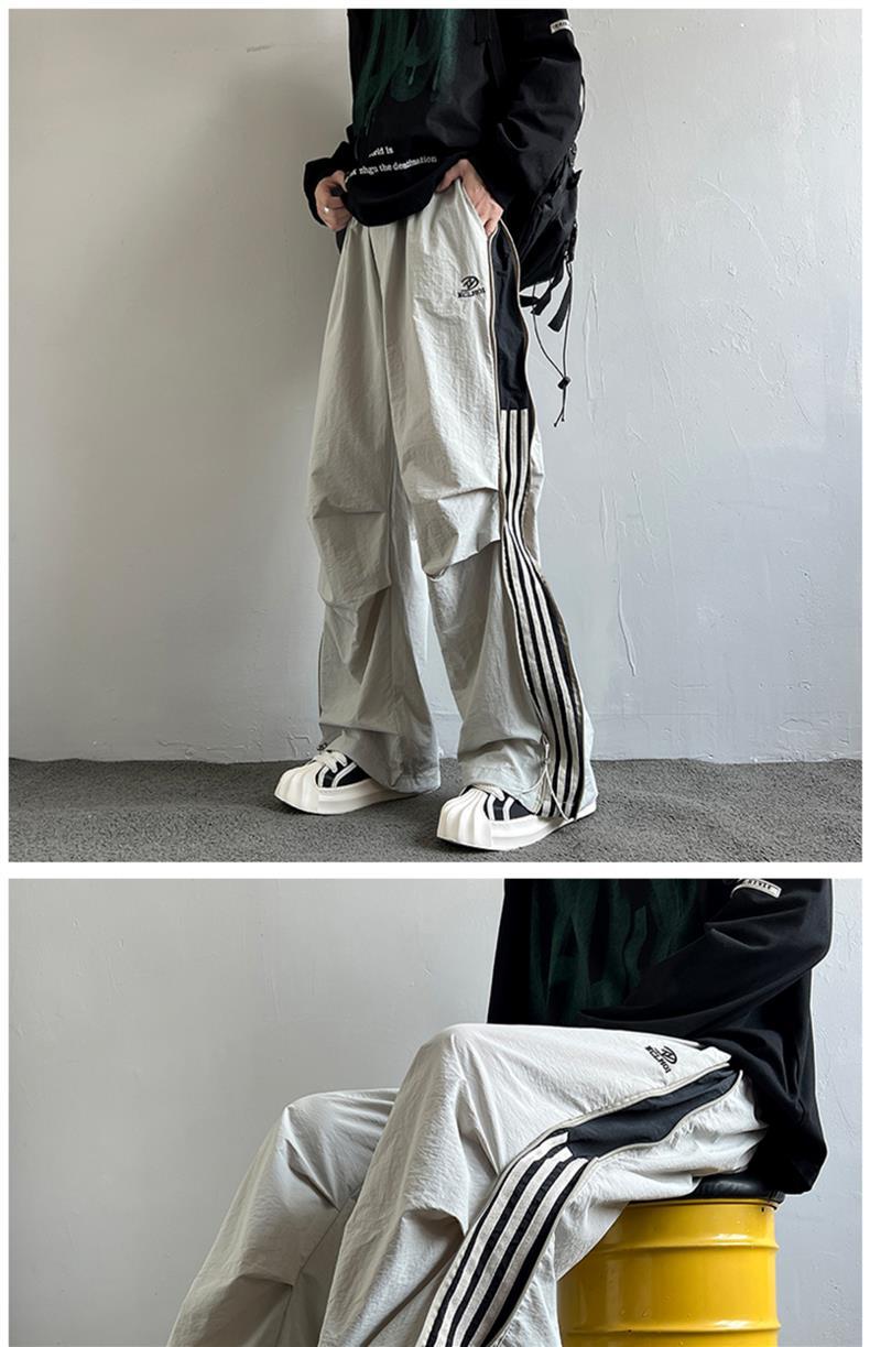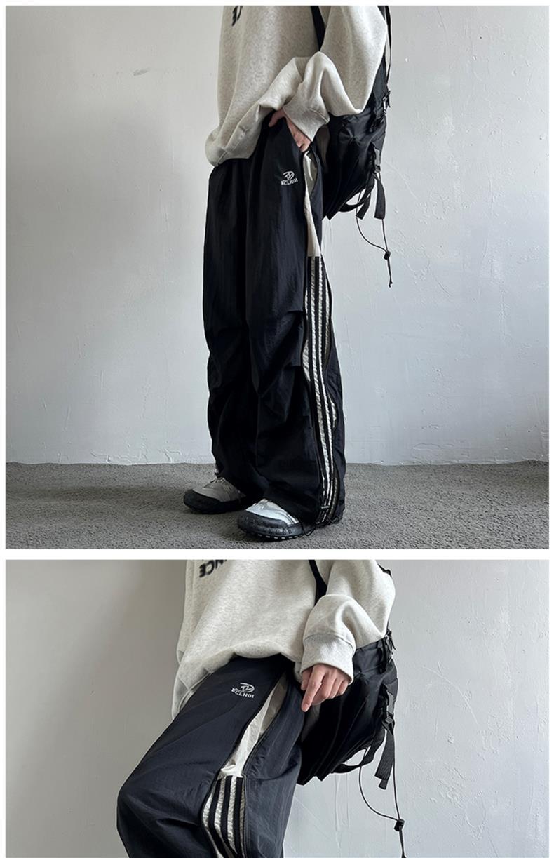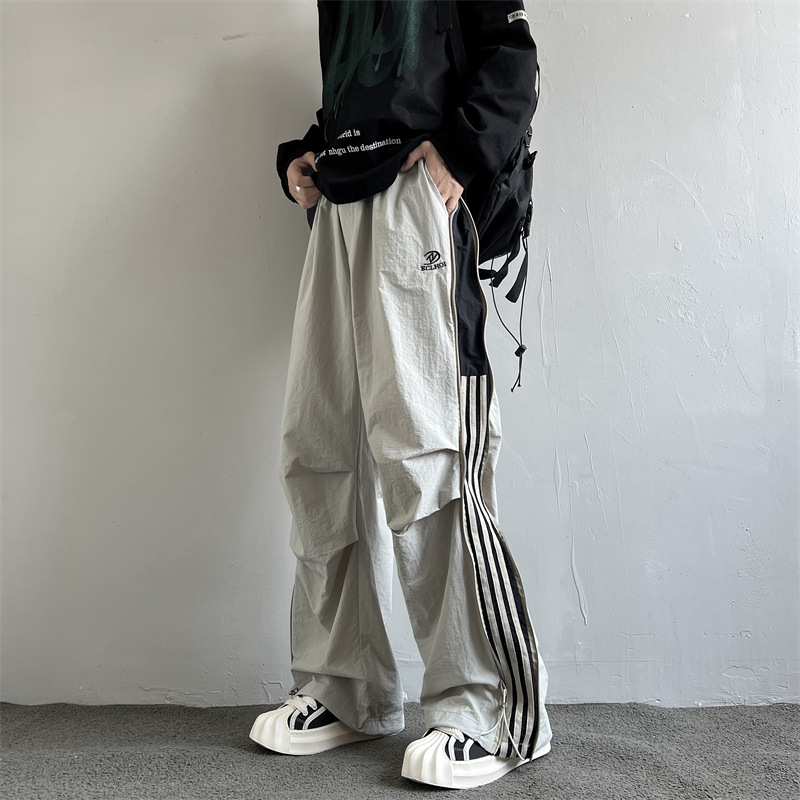 아메리칸 스포츠 지퍼 3줄 스트라이프 공수 바지 남성 가을 신작 트렌디 브랜드 하이 스트리트 루즈 캐주얼 속건성 충전 바지