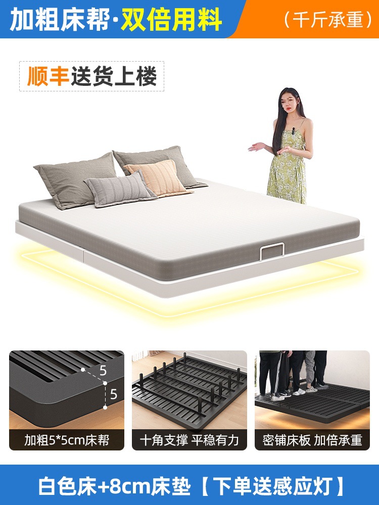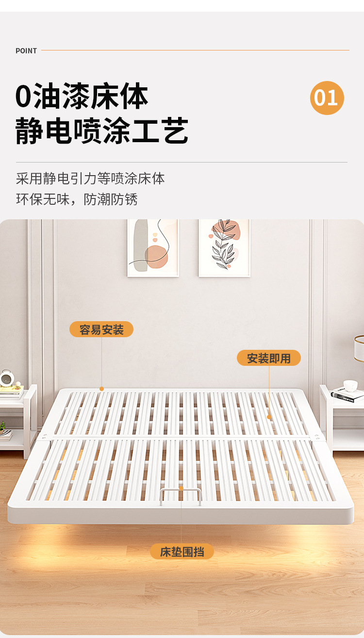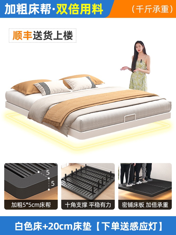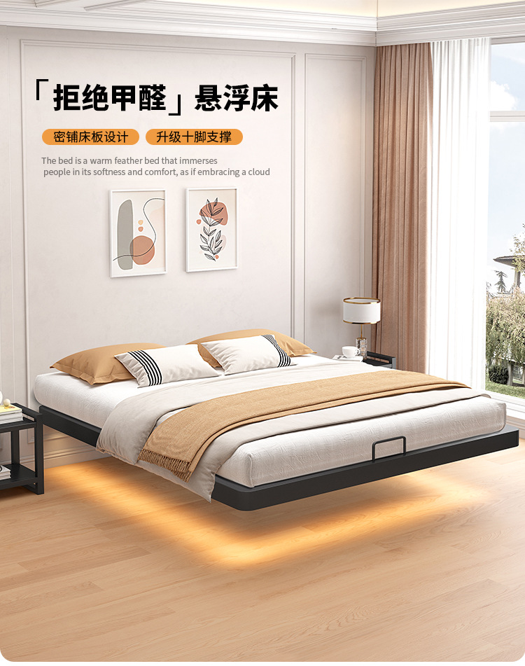 J^ 공중부양 침대 프레임 강철 프레임 철제 침대 프레임 행 뼈대 침대 헤드보드 없음 다다미 공중부양 싱글 및 더블 침대 철 프레임스토어 가기