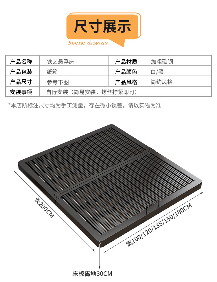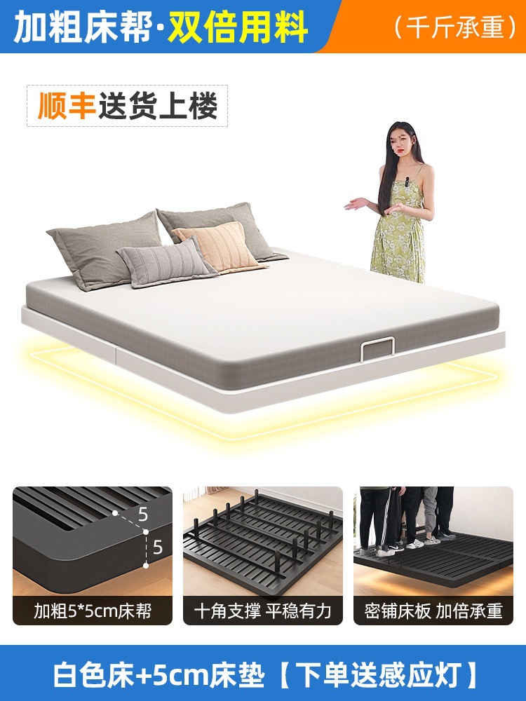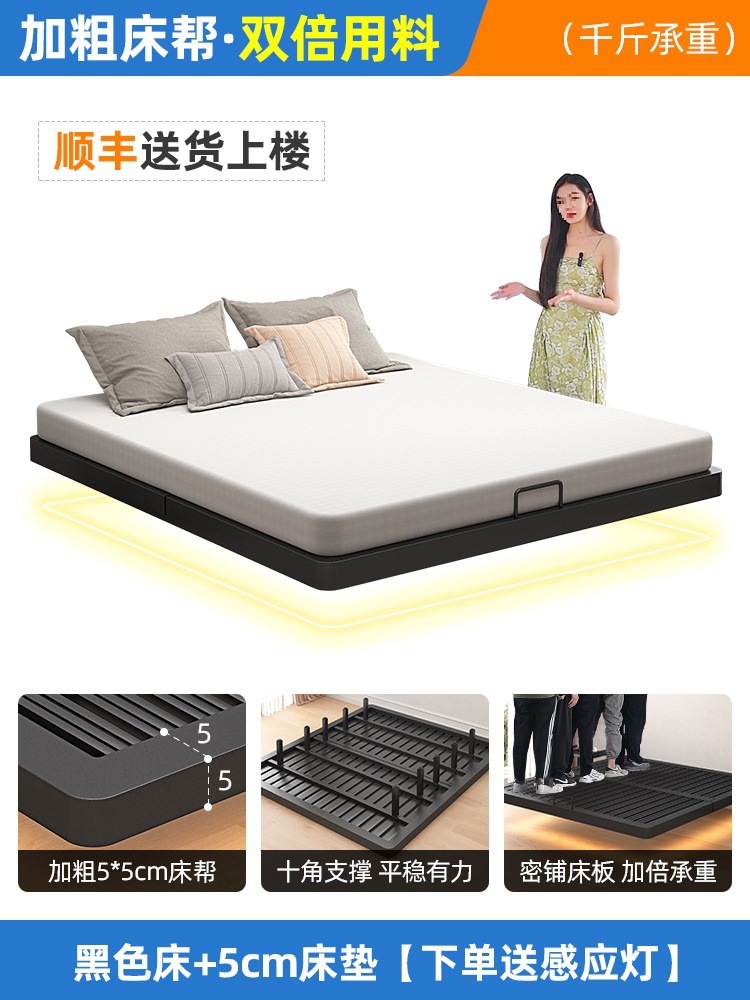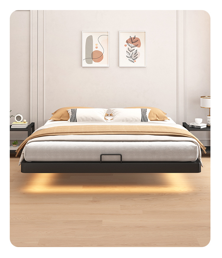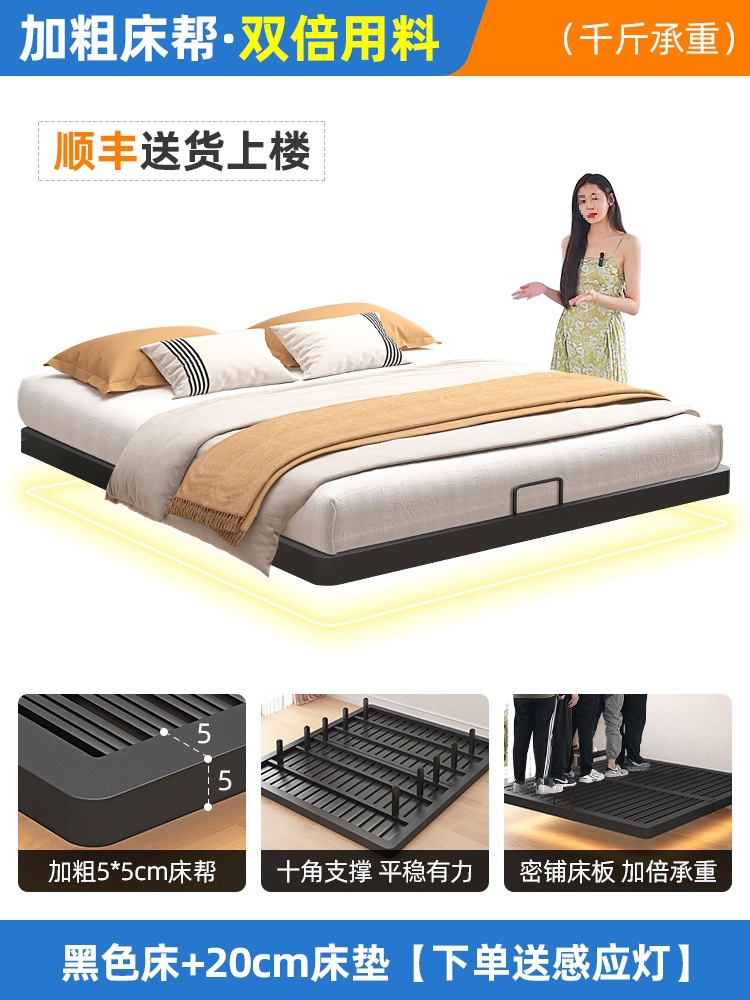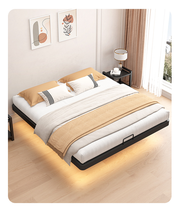 J^ 공중부양 침대 프레임 강철 프레임 철제 침대 프레임 행 뼈대 침대 헤드보드 없음 다다미 공중부양 싱글 및 더블 침대 철 프레임