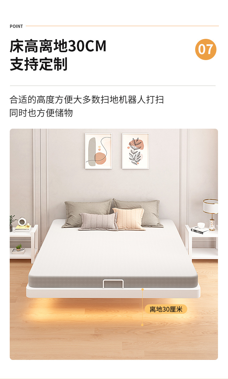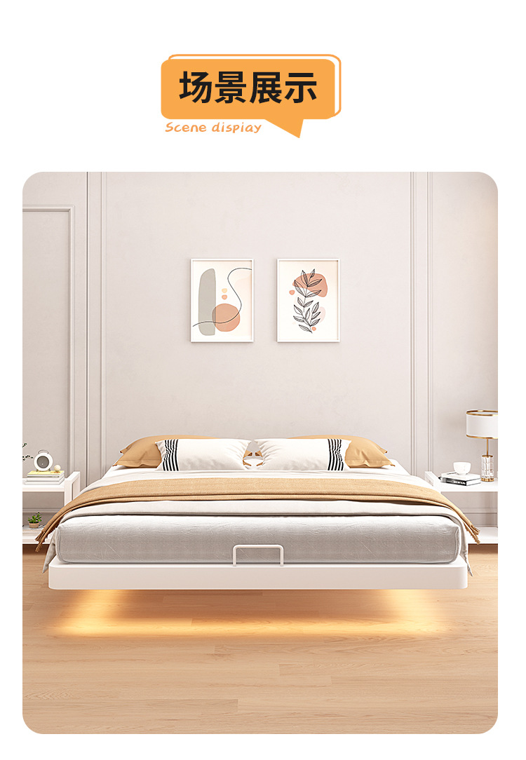 • 화이트 매달린 침대 + 20cm 스프링 매트리스 [두꺼운 침대 옆/주문시 센서등 무료]