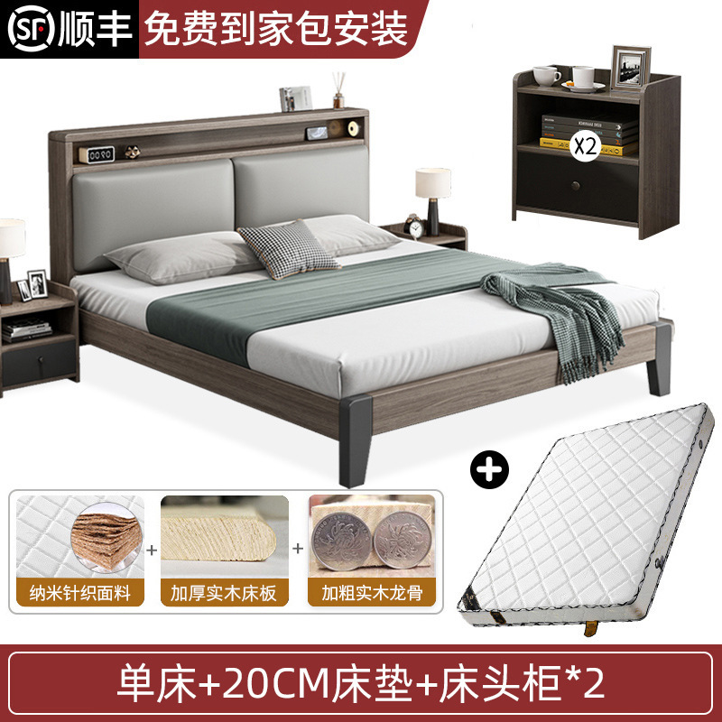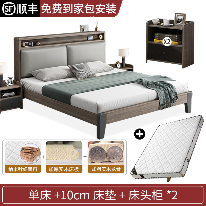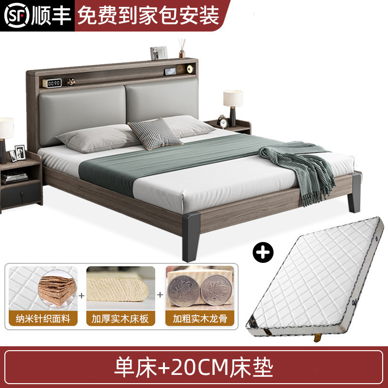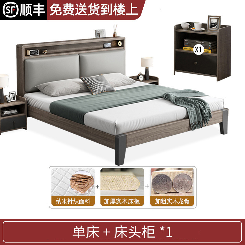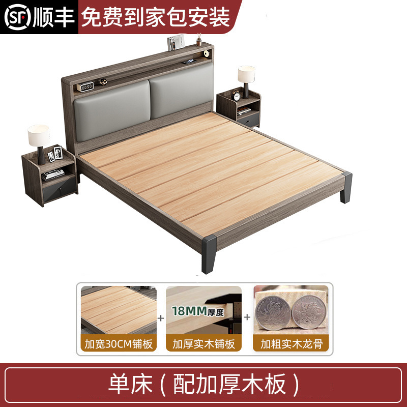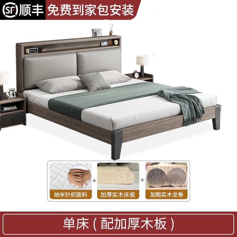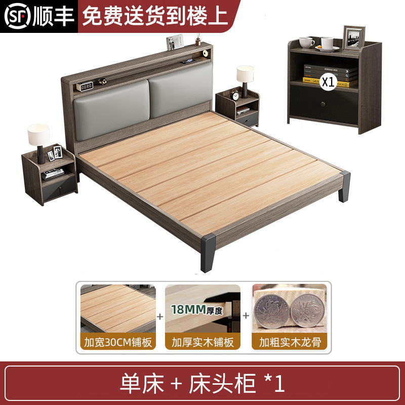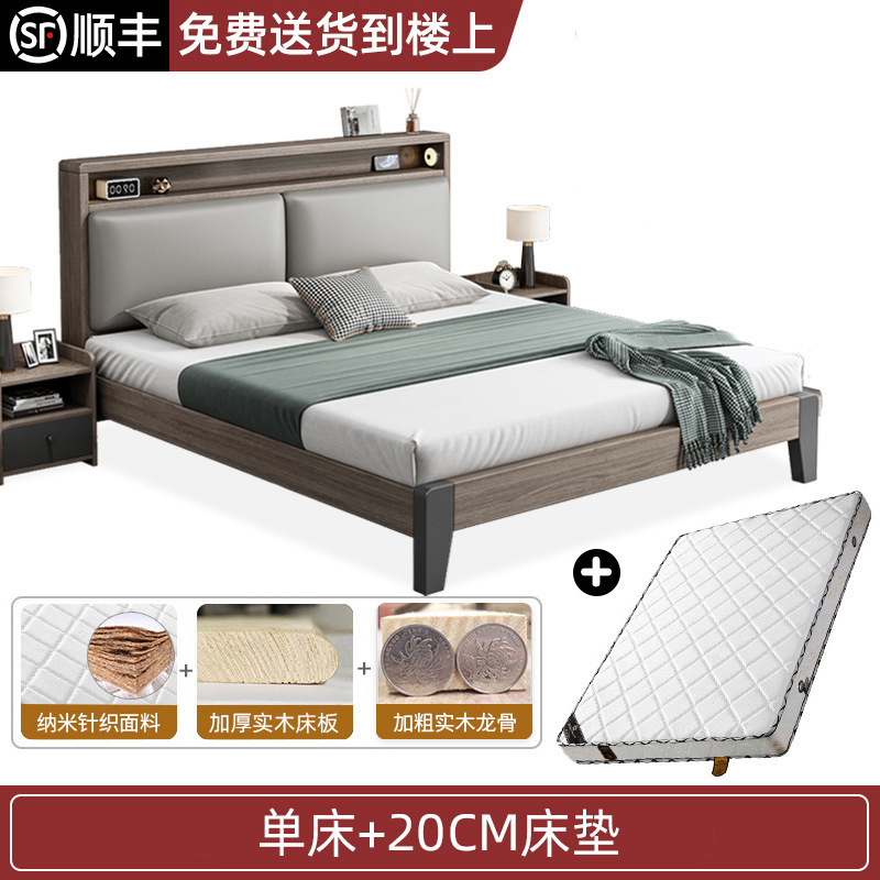 침대 원목 침대 새로운 스타일 모던 심플 라이트 럭셔리 그레이 1.8m 마스터 침실 홈 침대 1.5m 침대 더블 침대 싱글 침대 프레임스토어 가기