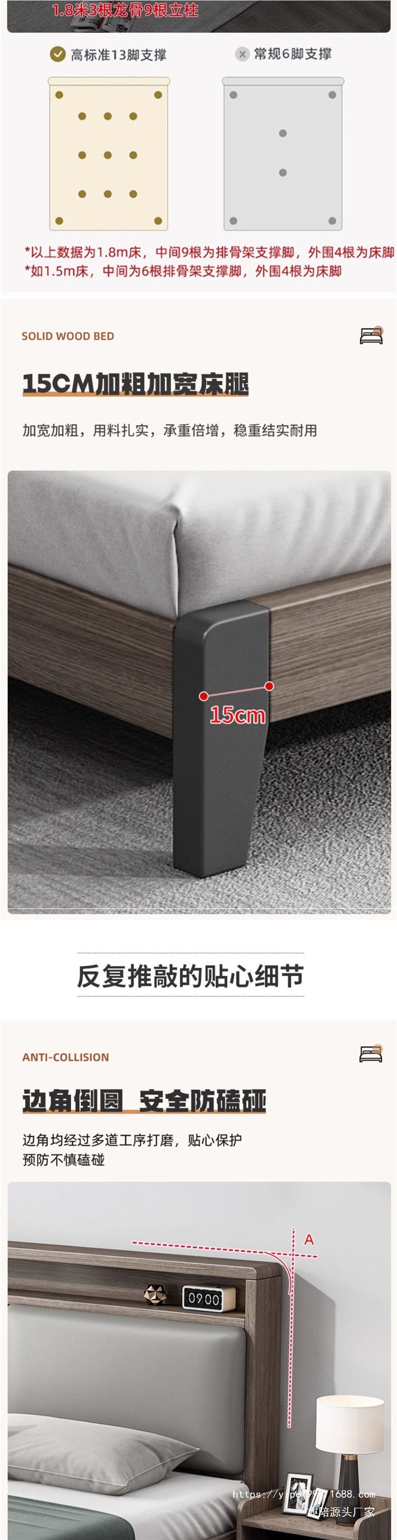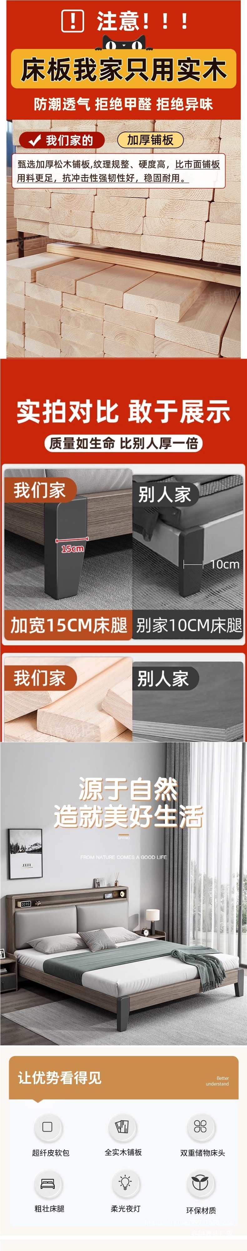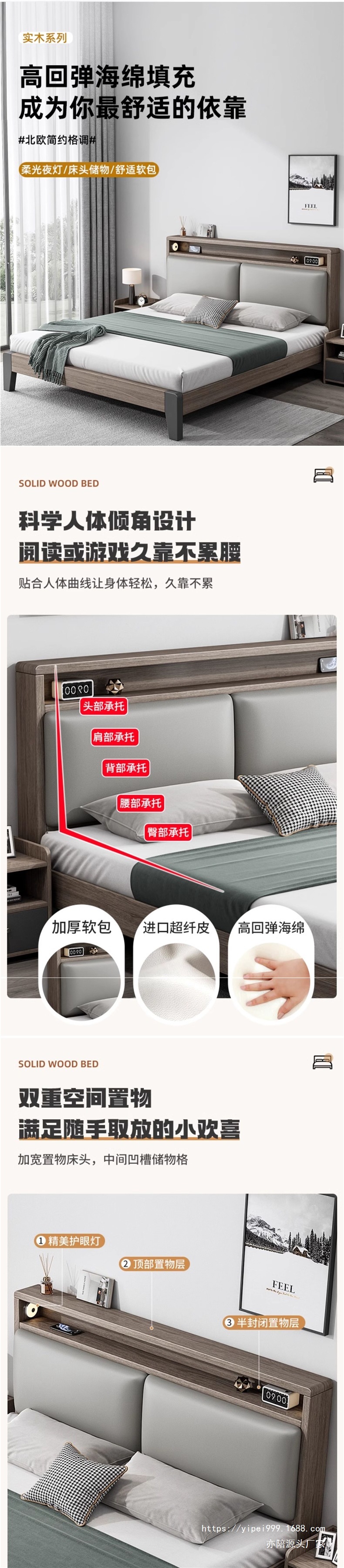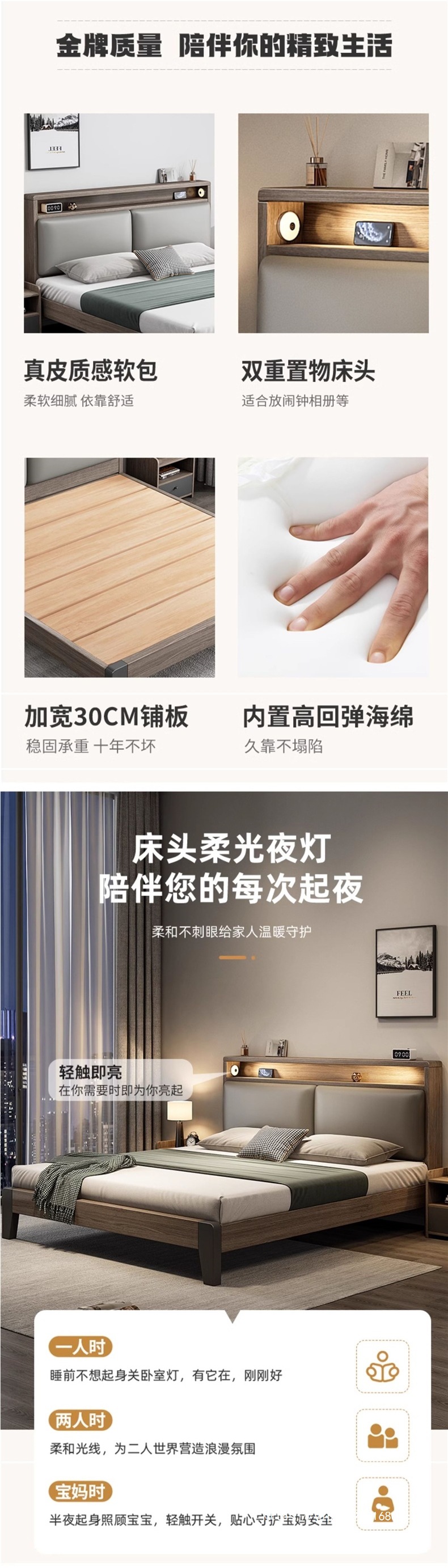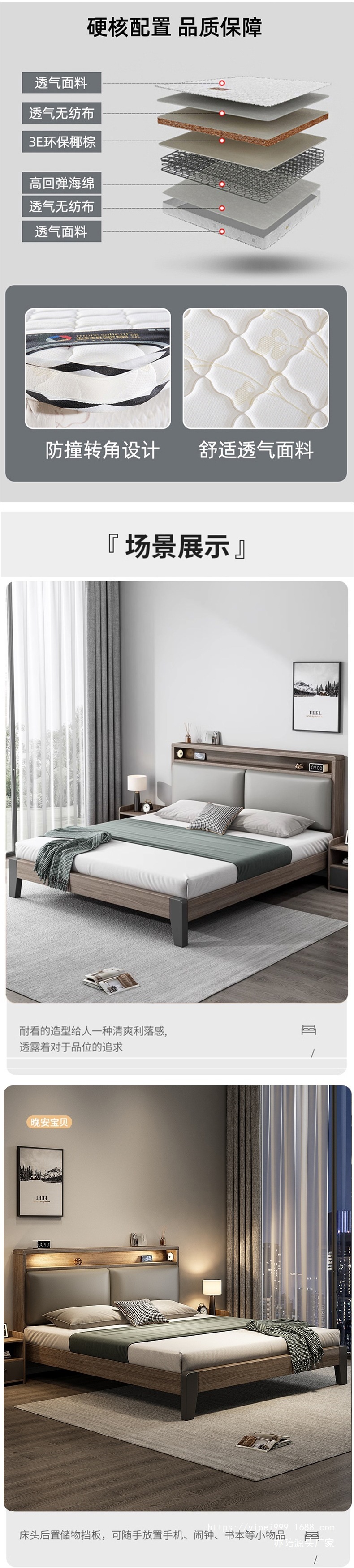 침대 원목 침대 새로운 스타일 모던 심플 라이트 럭셔리 그레이 1.8m 마스터 침실 홈 침대 1.5m 침대 더블 침대 싱글 침대 프레임스토어 가기