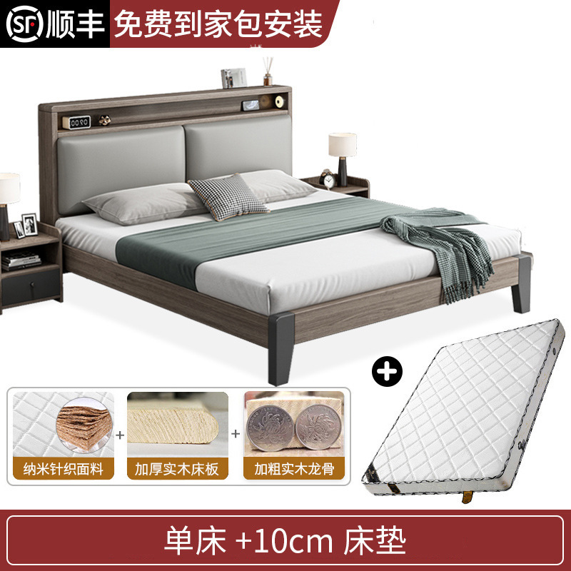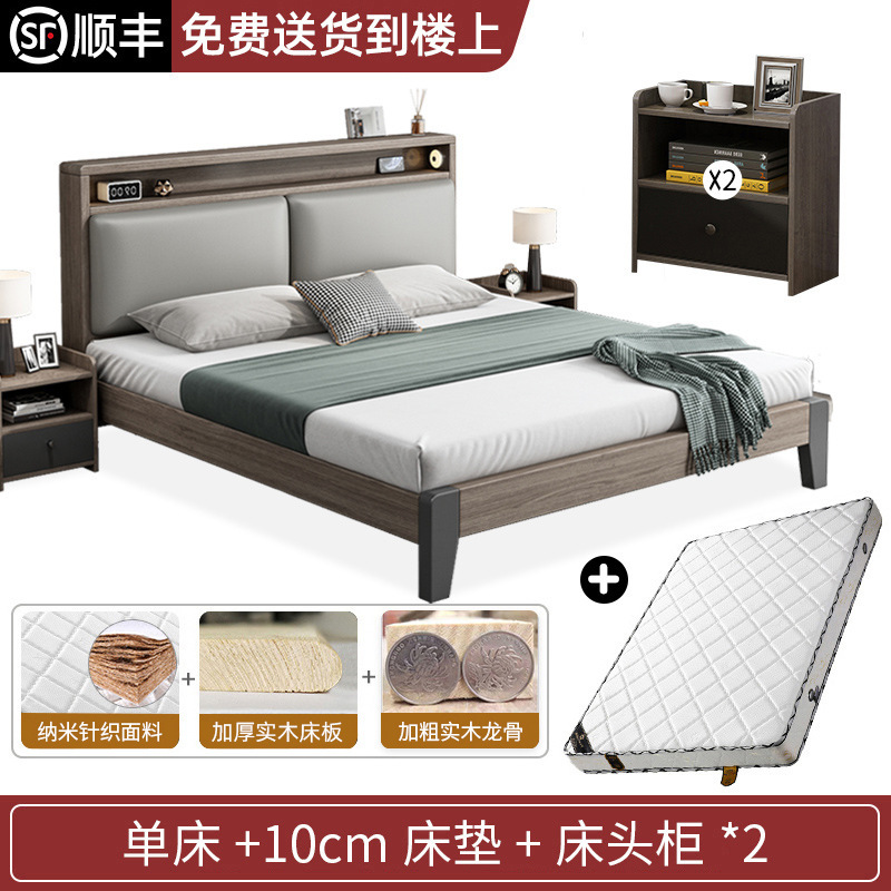 • 두꺼운 회색 싱글 침대 + 20cm 매트리스 + 침대 옆 테이블 * 1 [위층 무료]