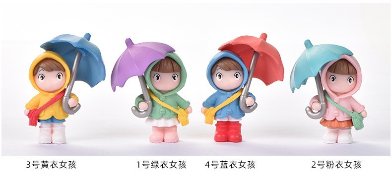 • 연한 노란색 우산 소녀 4개 세트