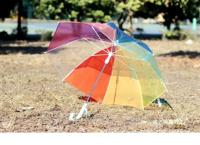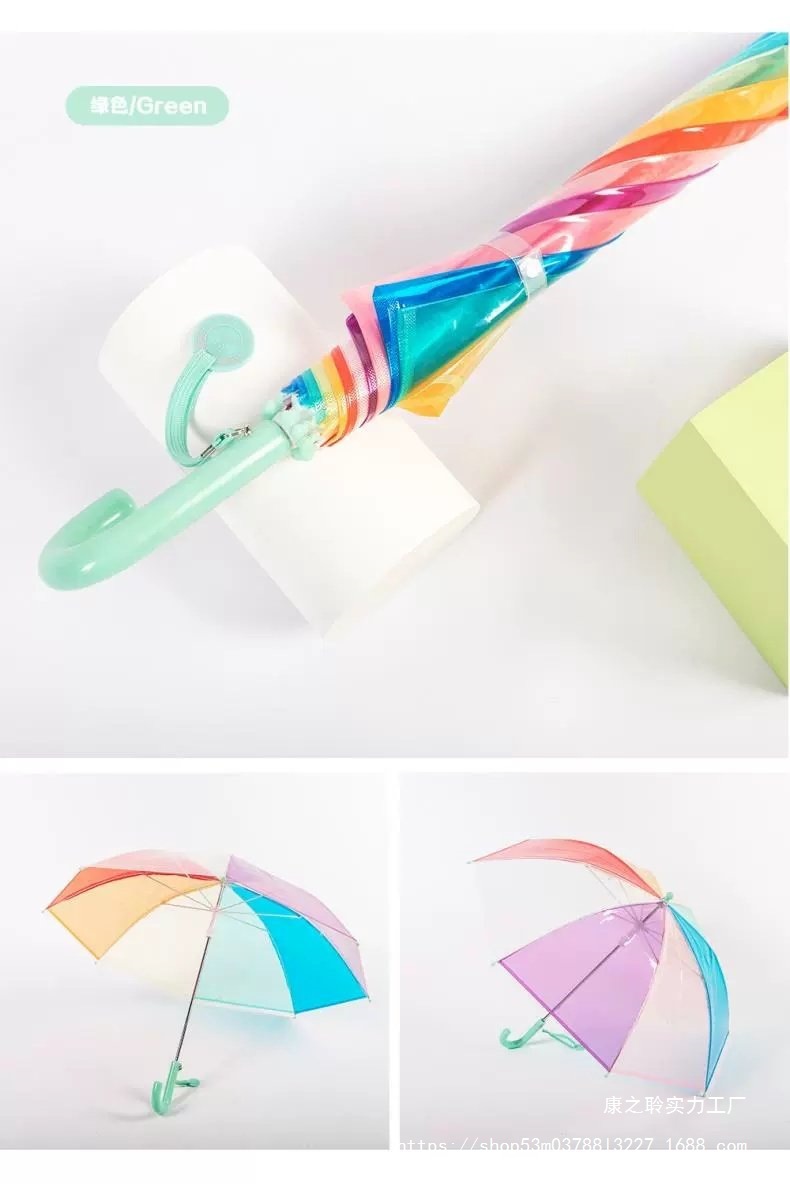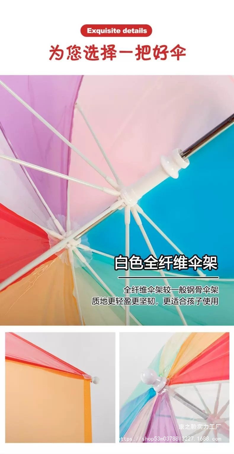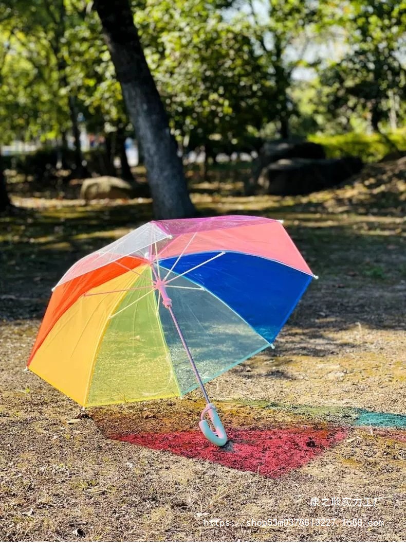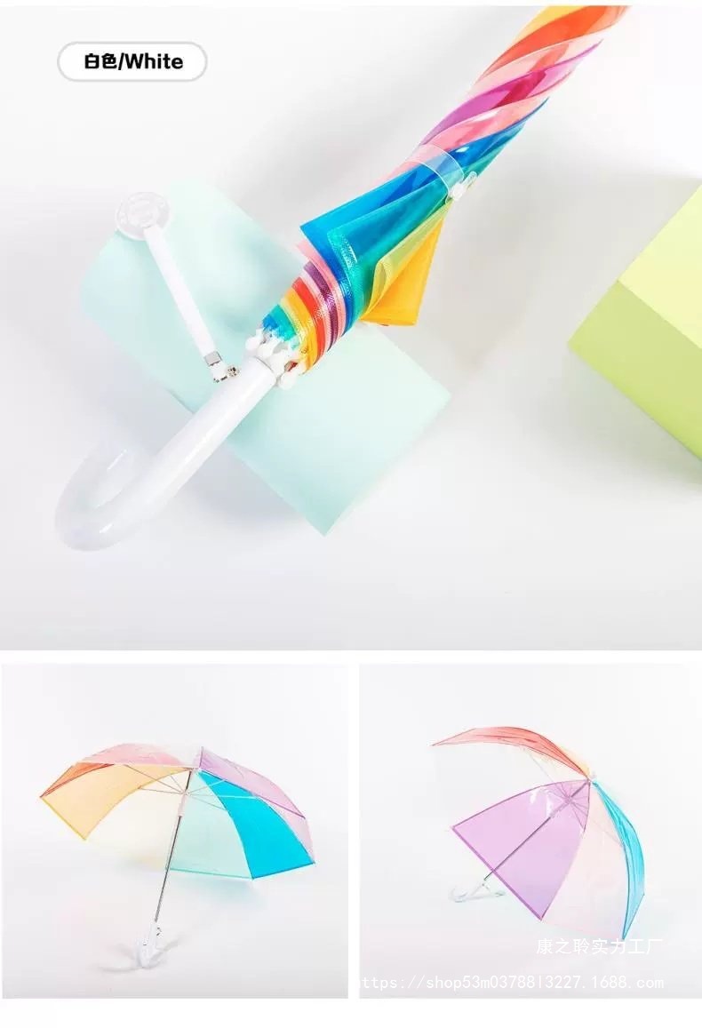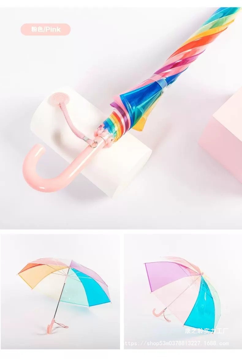 3-8세 유치원생을 위한 어린이용 손으로 여는 긴 손잡이 어린이용 투명 우산, 무지개 우산, 투명 우산, 방풍