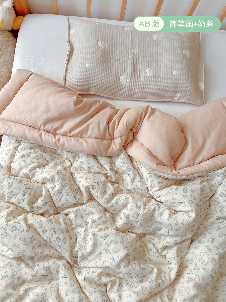 Aiyu 아기 아기 이불 순면 더블 레이어 거즈 봄, 가을 이불 부모-자식 콩 에어컨 이불 아기 어린이 여름 이불스토어 가기