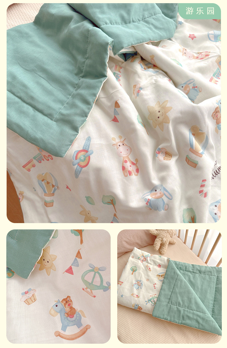 Aiyu 아기 아기 이불 순면 더블 레이어 거즈 봄, 가을 이불 부모-자식 콩 에어컨 이불 아기 어린이 여름 이불