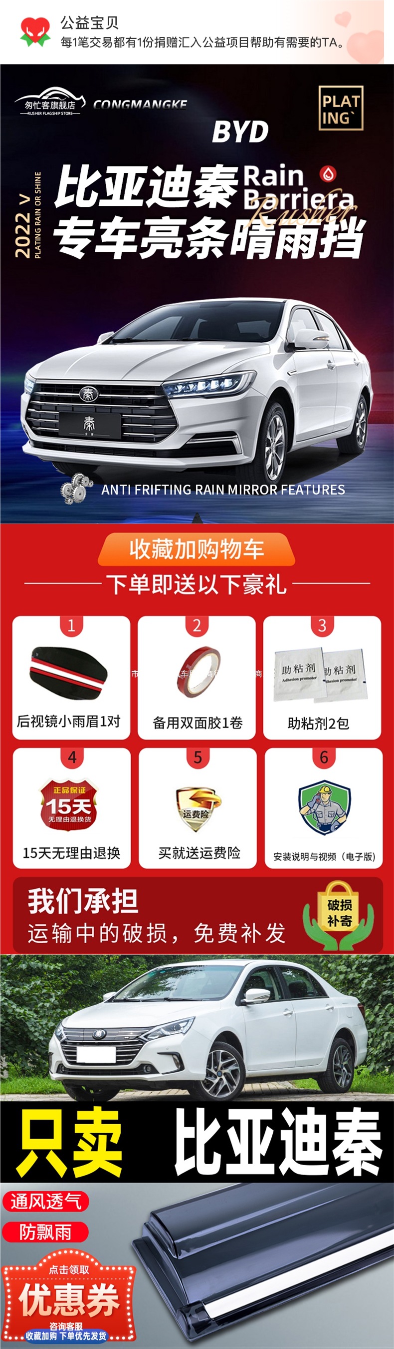 • Qin New Energy/EV [두꺼운 4개 | 고급 스테인레스 스틸 브라이트 스트립] 업그레이드 모델