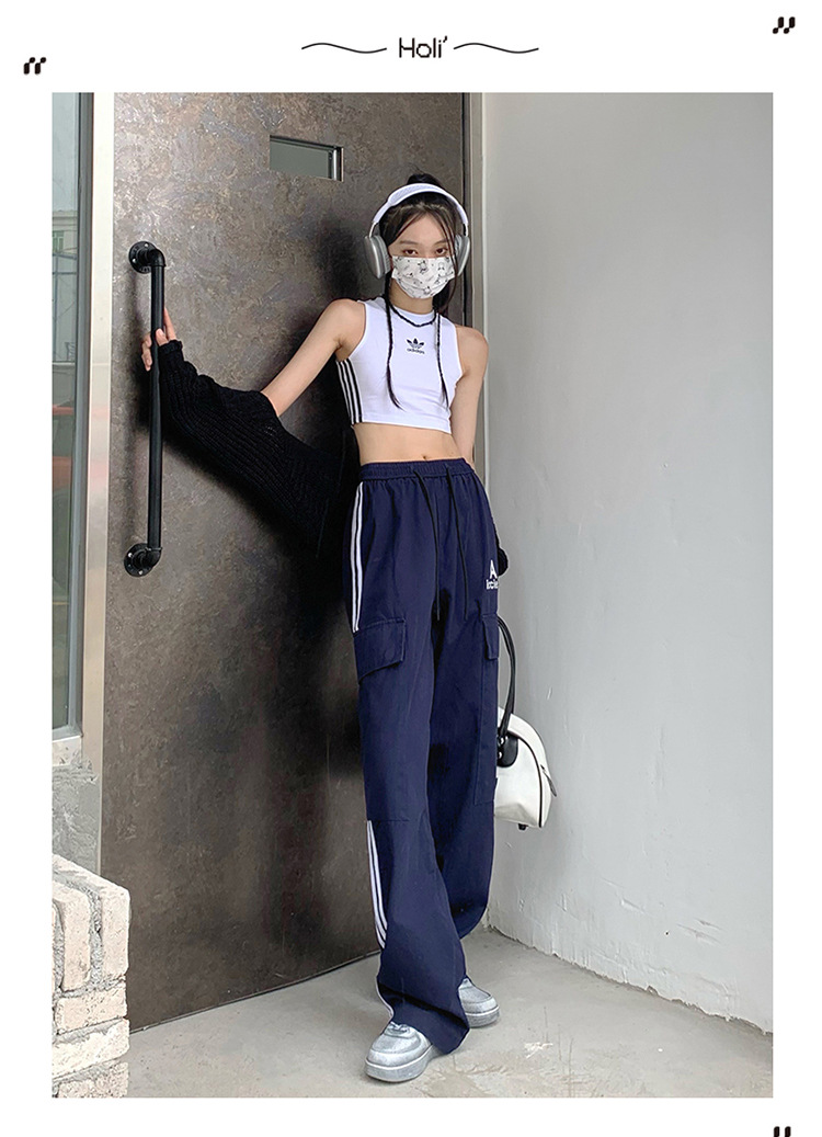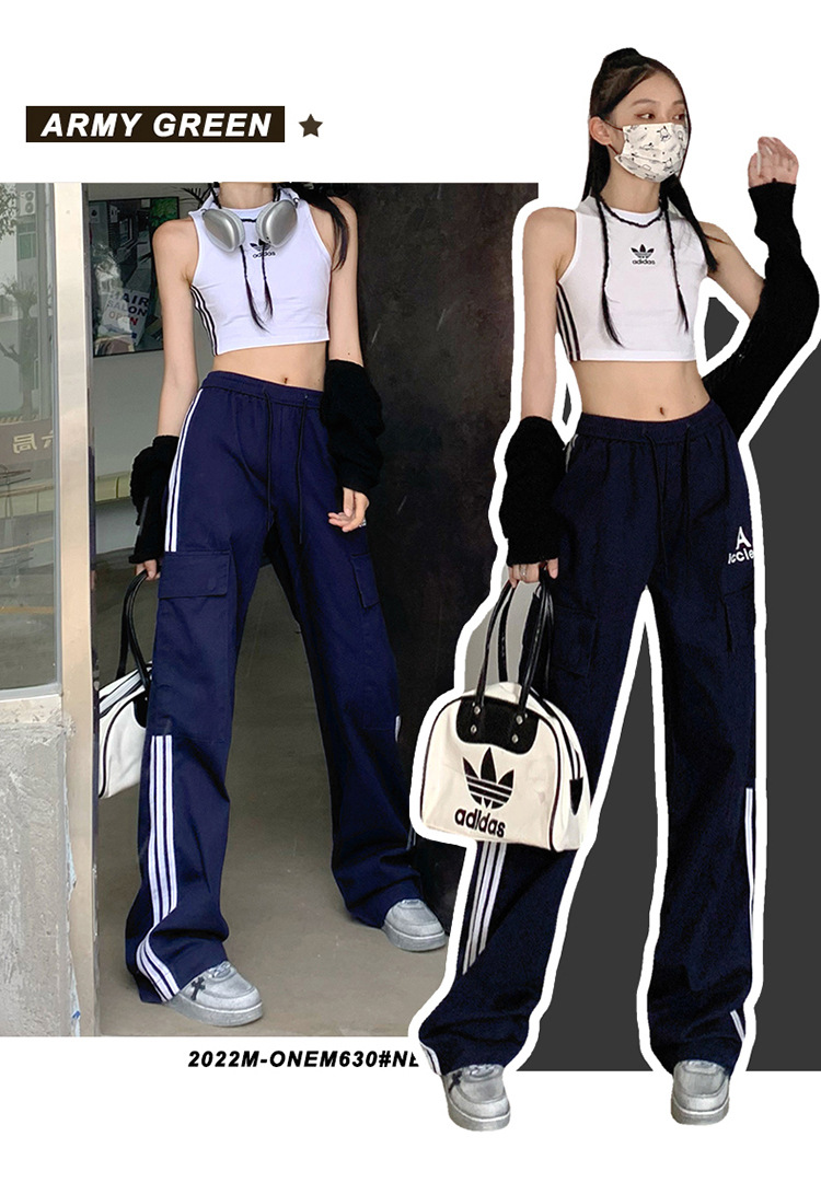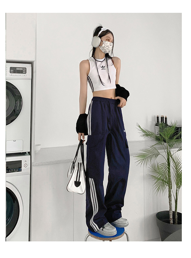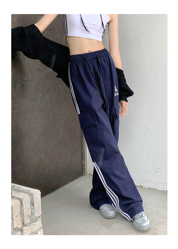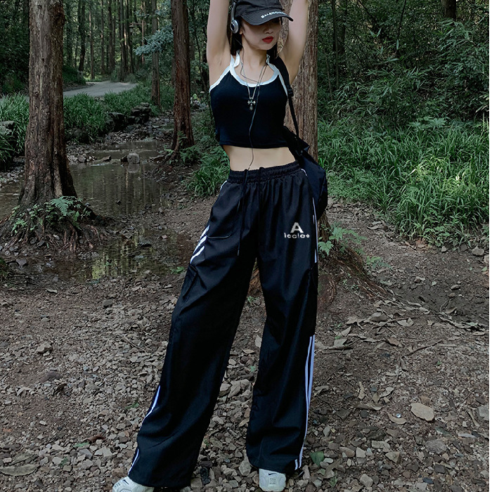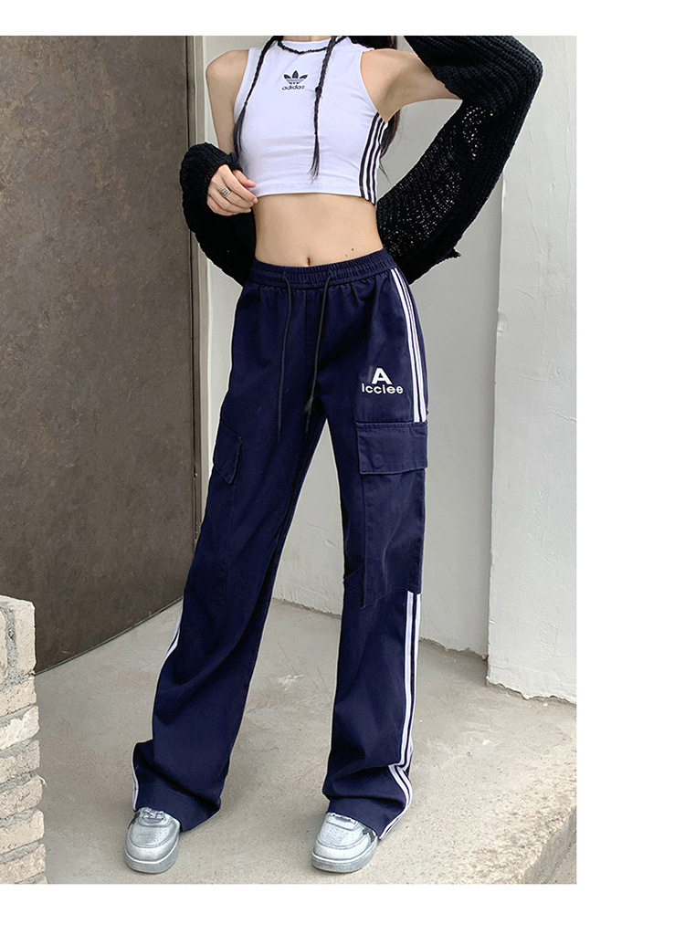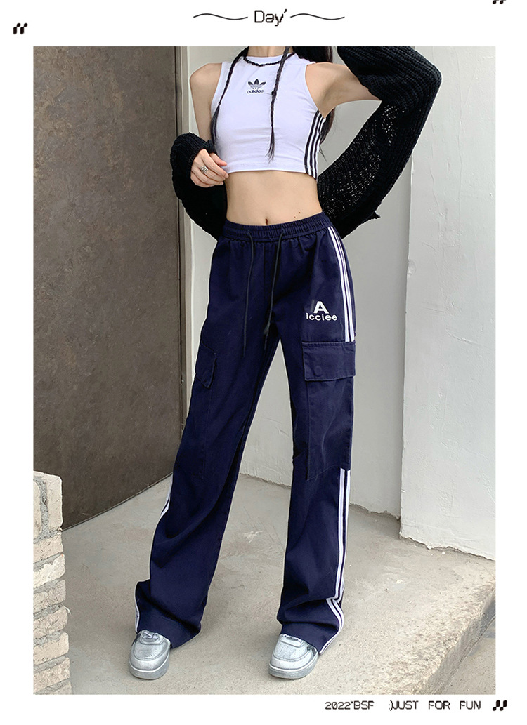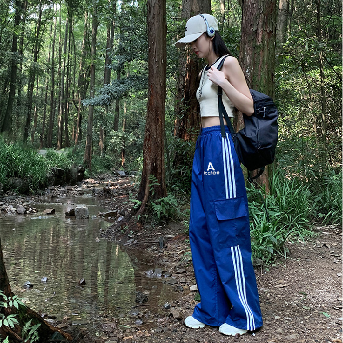 여성을 위한 레트로 3 스트라이프 아웃도어 하이킹 바지, 봄, 가을 와이드 레그 스포츠 바지, 하이 웨이스트 바닥 길이 바지스토어 가기