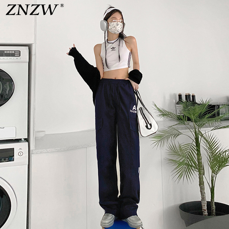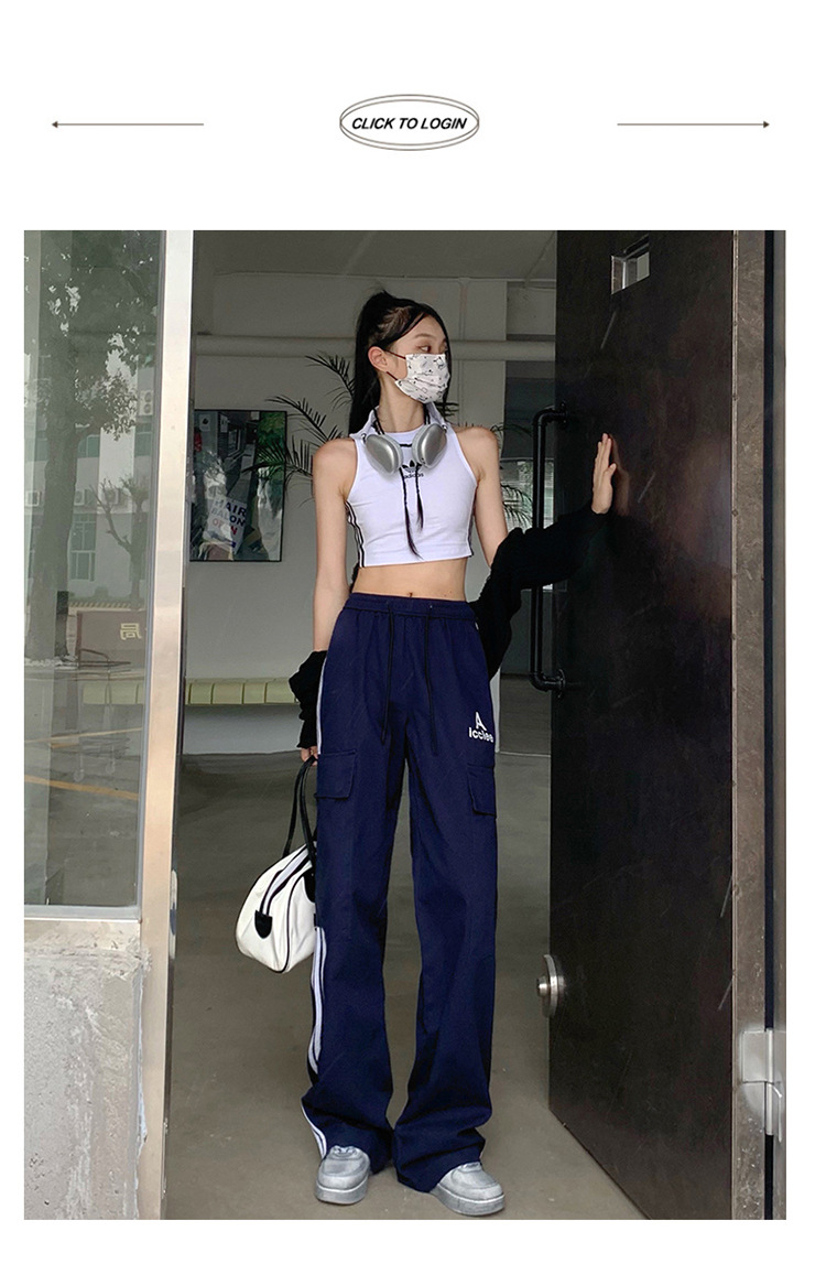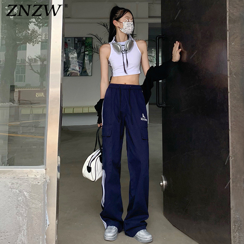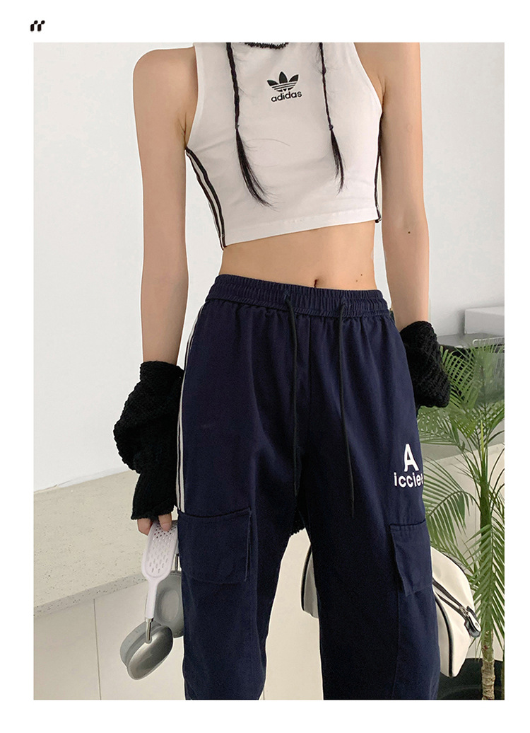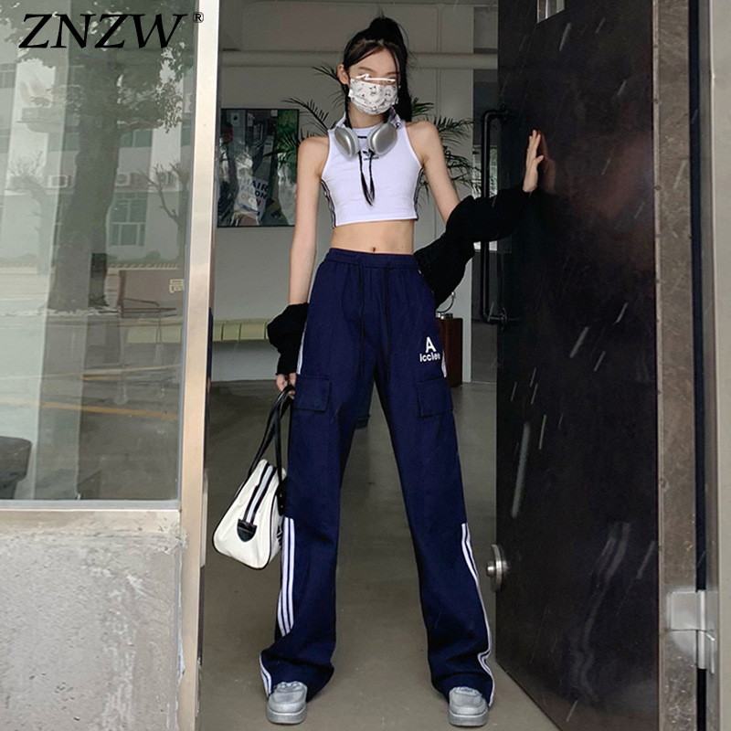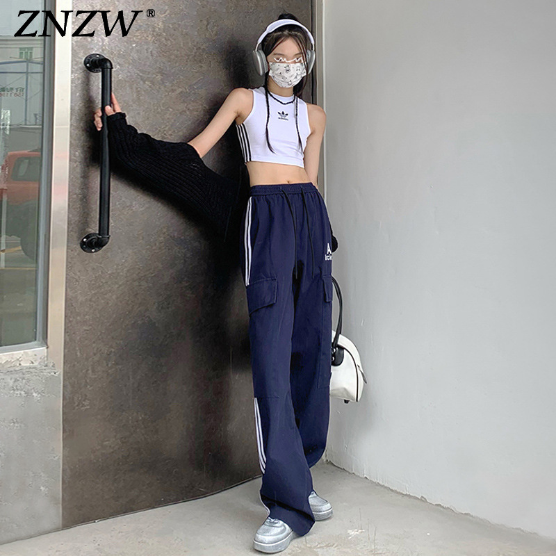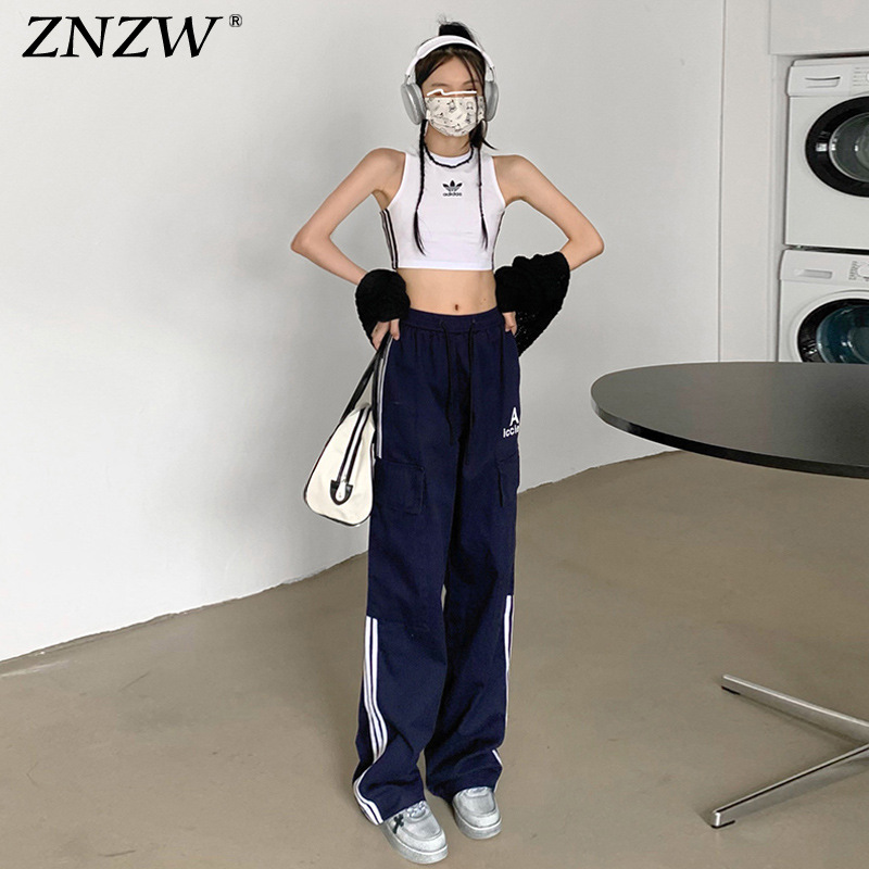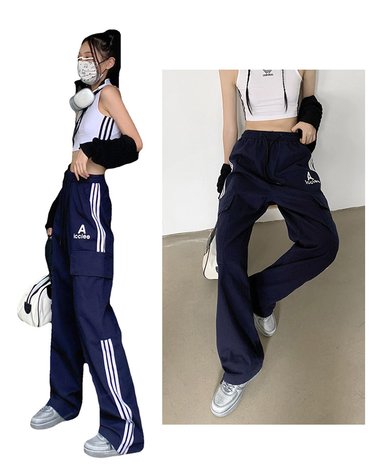 여성을 위한 레트로 3 스트라이프 아웃도어 하이킹 바지, 봄, 가을 와이드 레그 스포츠 바지, 하이 웨이스트 바닥 길이 바지스토어 가기