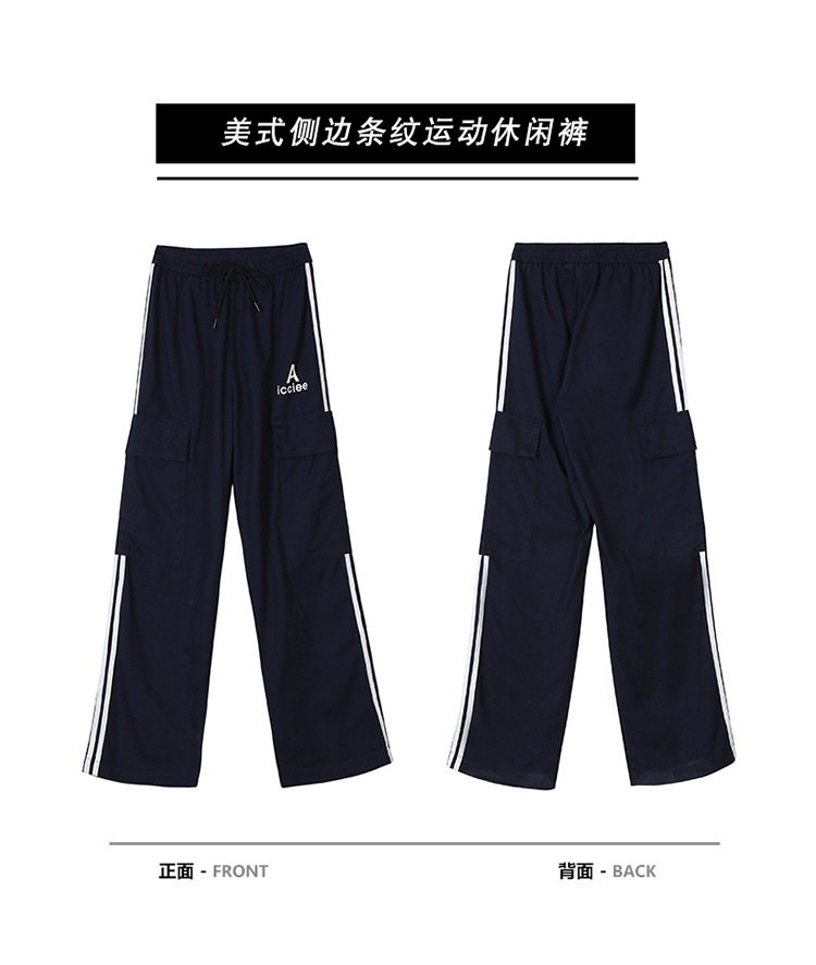 여성을 위한 레트로 3 스트라이프 아웃도어 하이킹 바지, 봄, 가을 와이드 레그 스포츠 바지, 하이 웨이스트 바닥 길이 바지