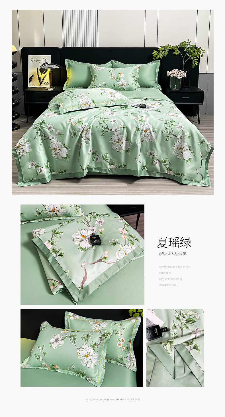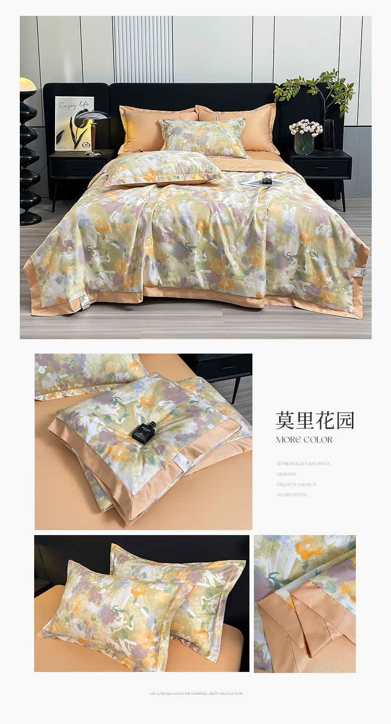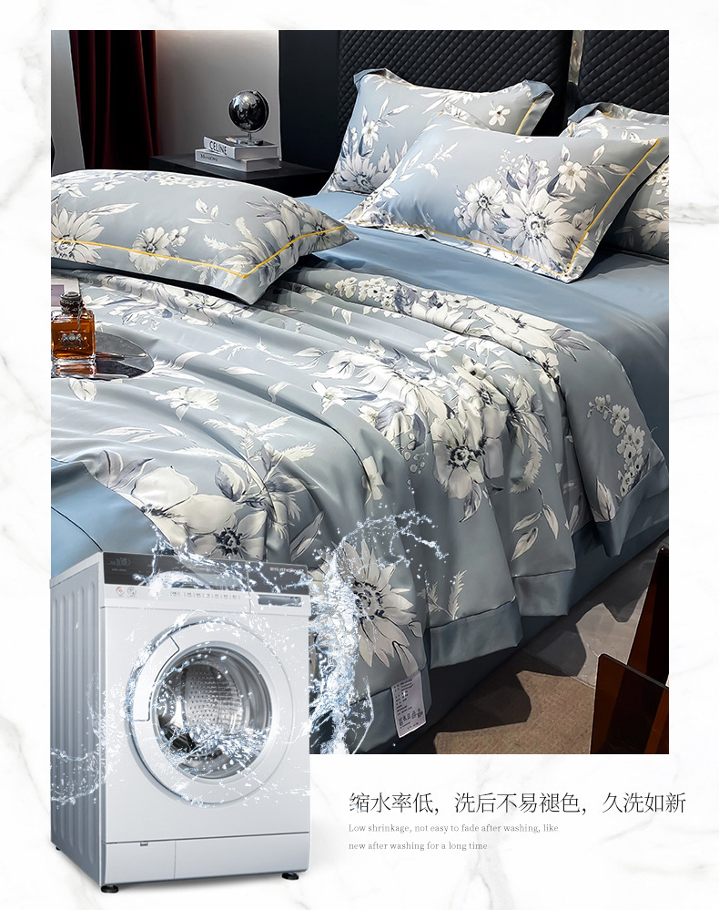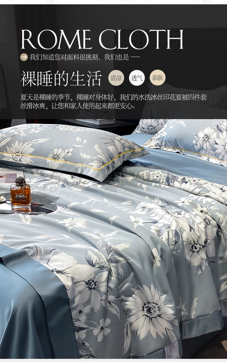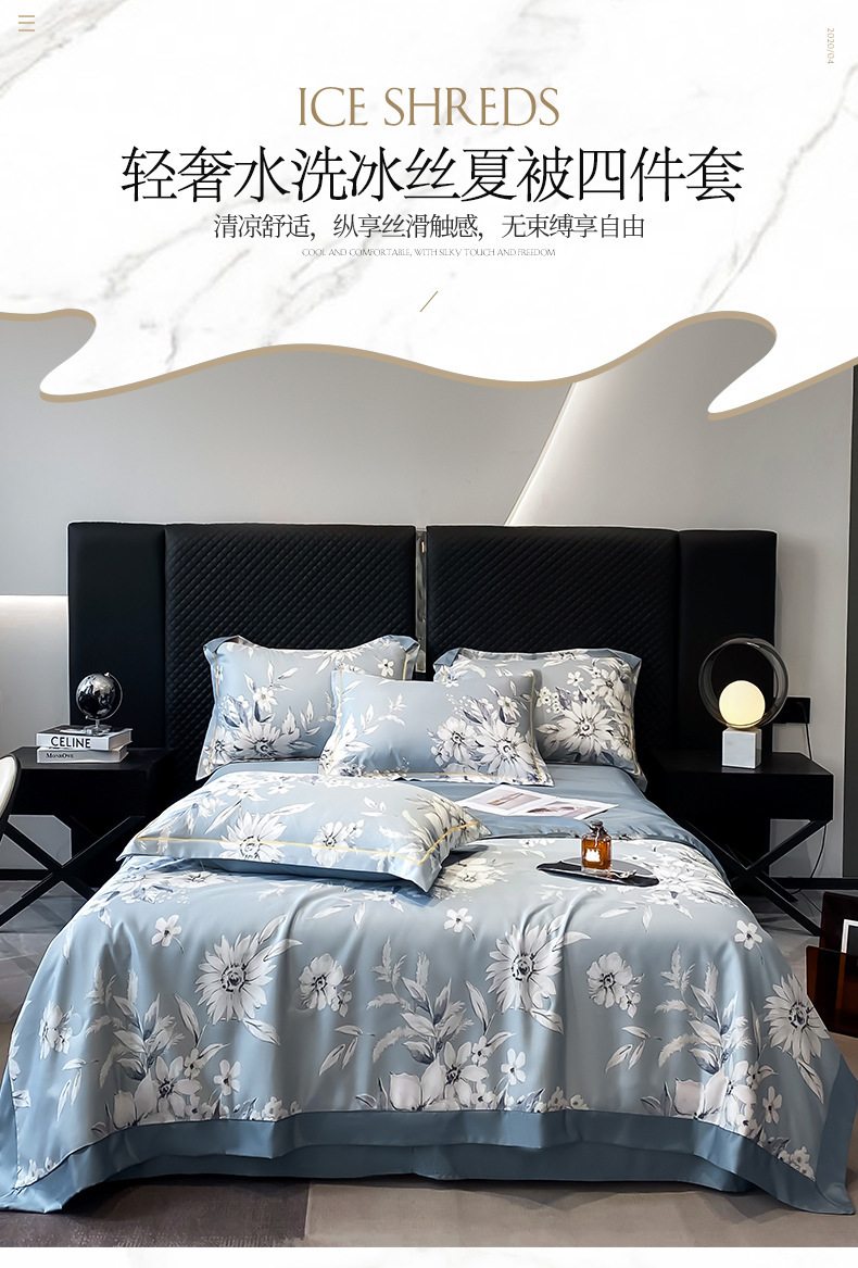 워시드 실크 여름 이불 4피스 세트 라이트 럭셔리 스타일 여름 텐셀 여름 이불 시원한 실크 아이스 실크 에어컨 얇은 이불스토어 가기