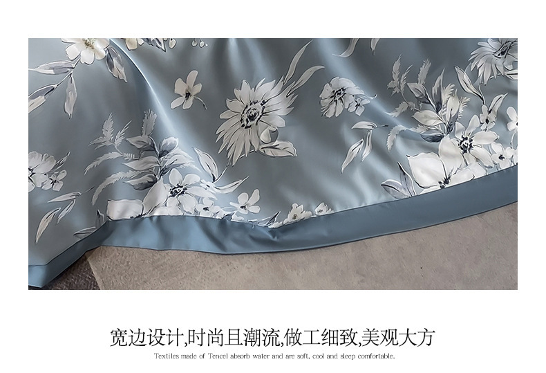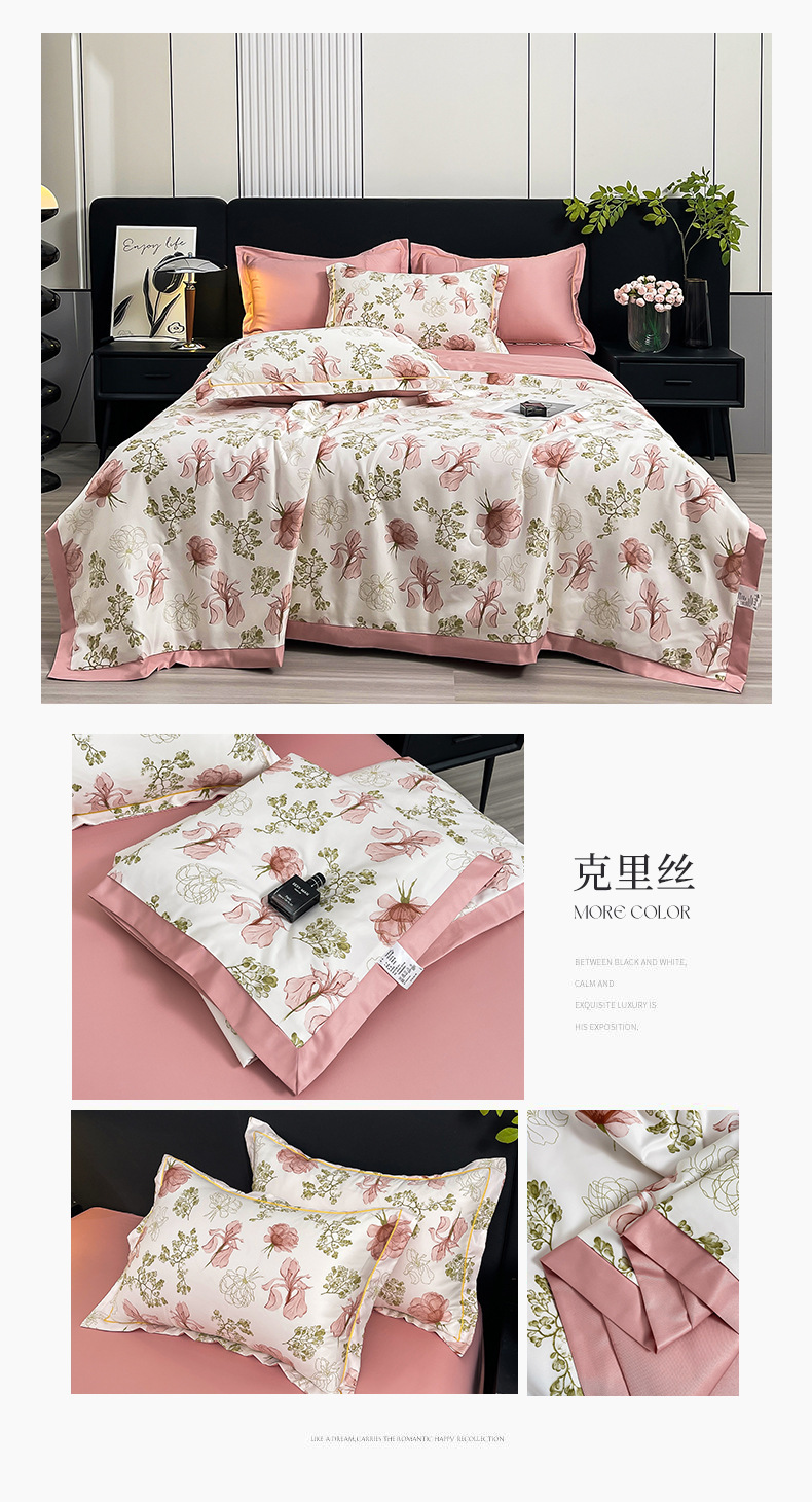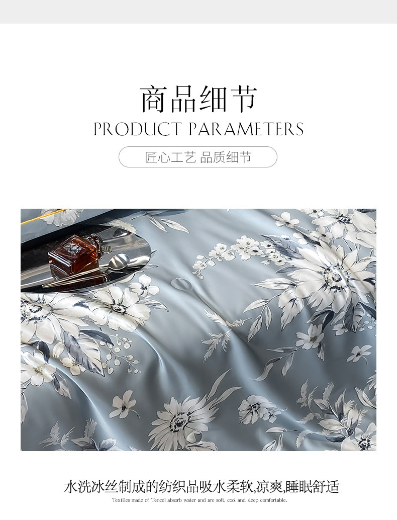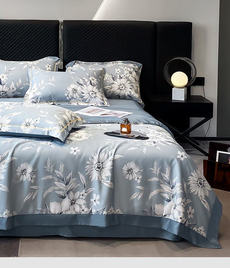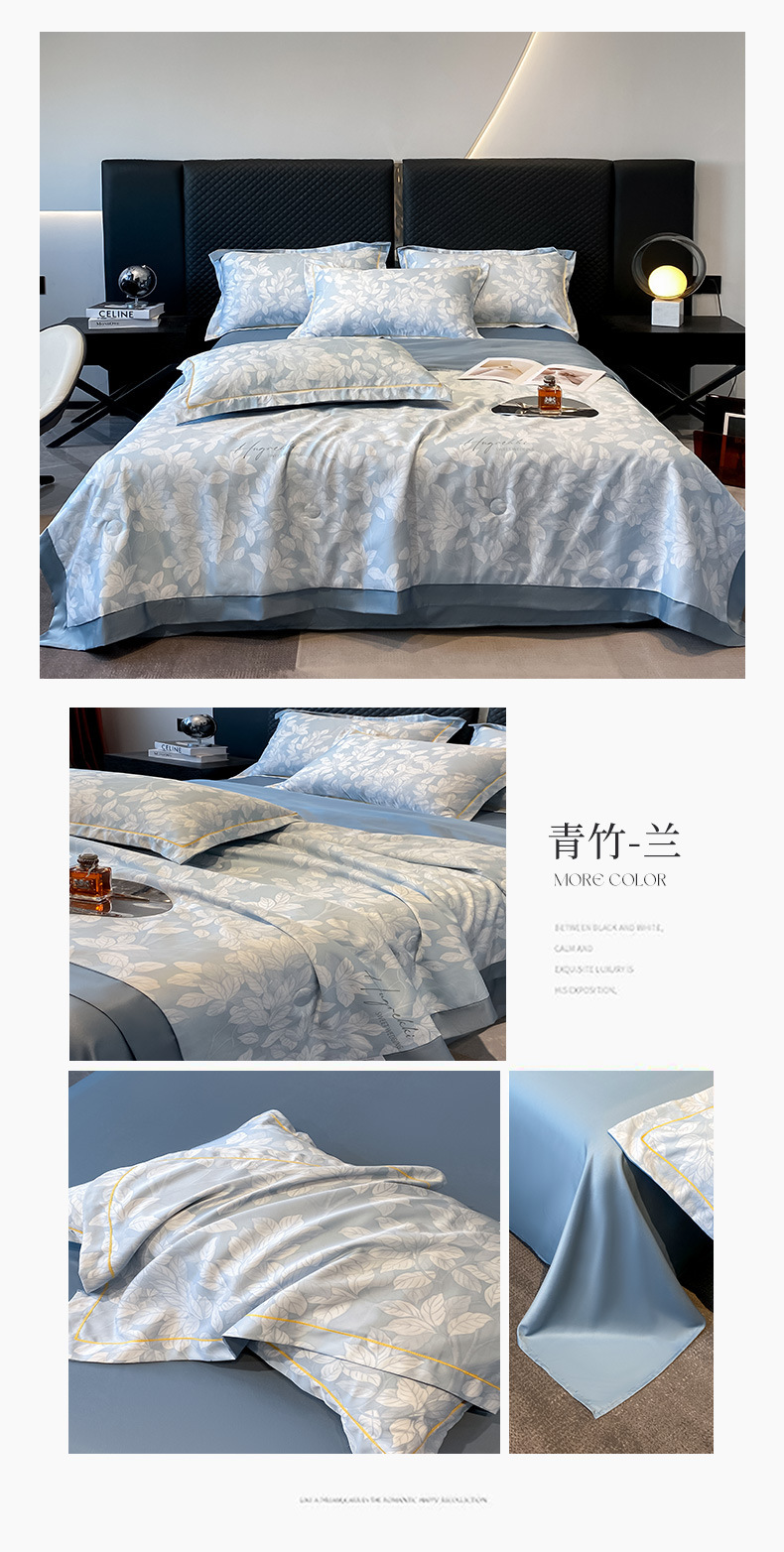 워시드 실크 여름 이불 4피스 세트 라이트 럭셔리 스타일 여름 텐셀 여름 이불 시원한 실크 아이스 실크 에어컨 얇은 이불스토어 가기
