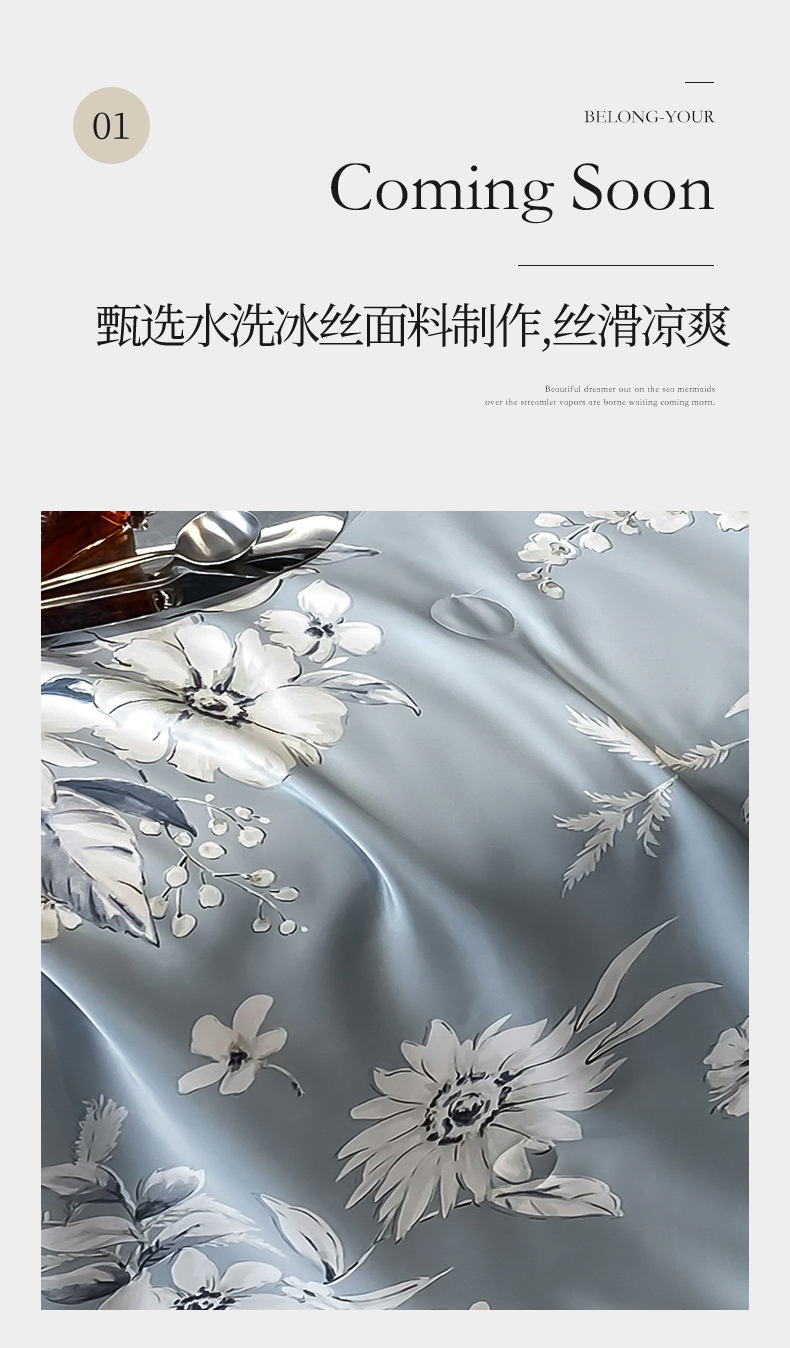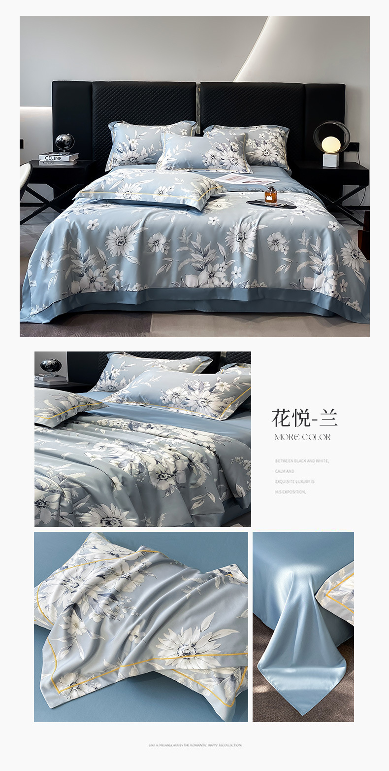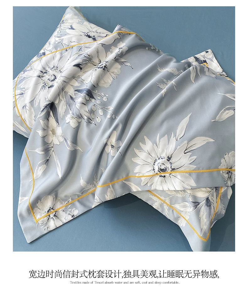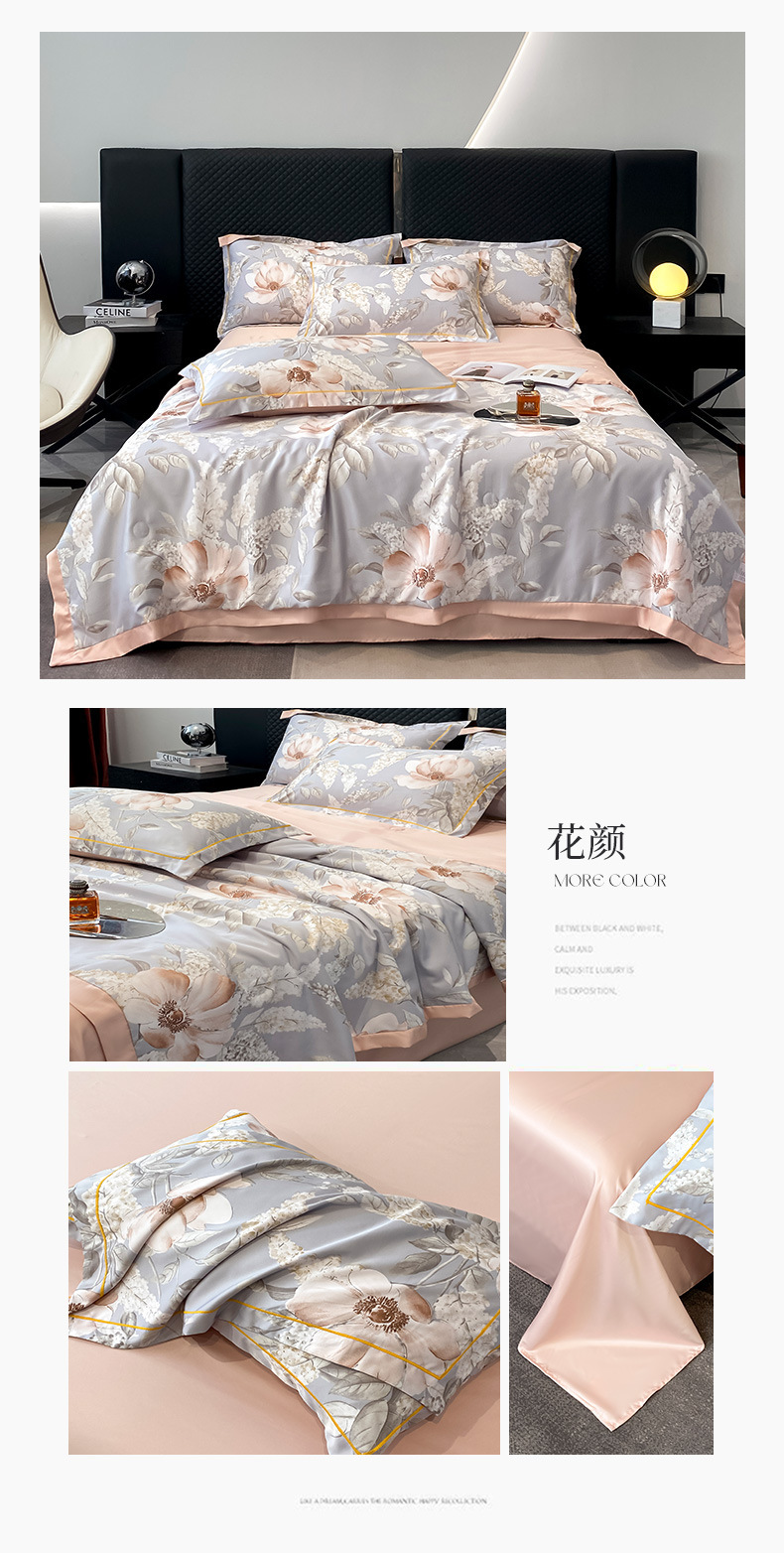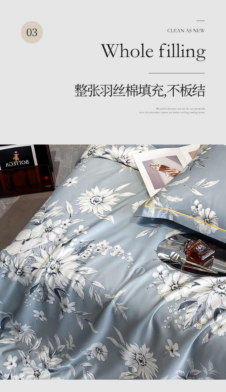 워시드 실크 여름 이불 4피스 세트 라이트 럭셔리 스타일 여름 텐셀 여름 이불 시원한 실크 아이스 실크 에어컨 얇은 이불스토어 가기