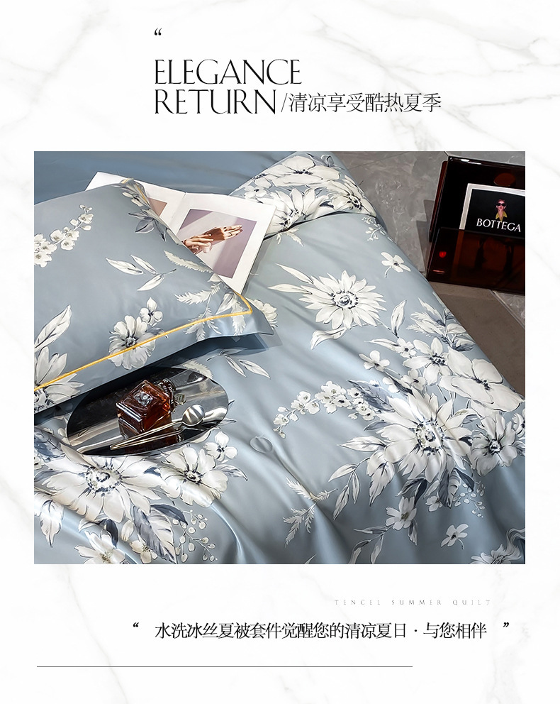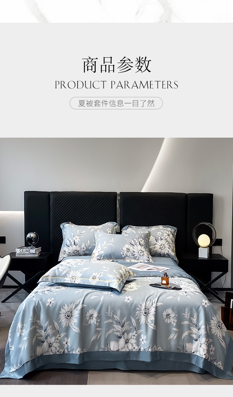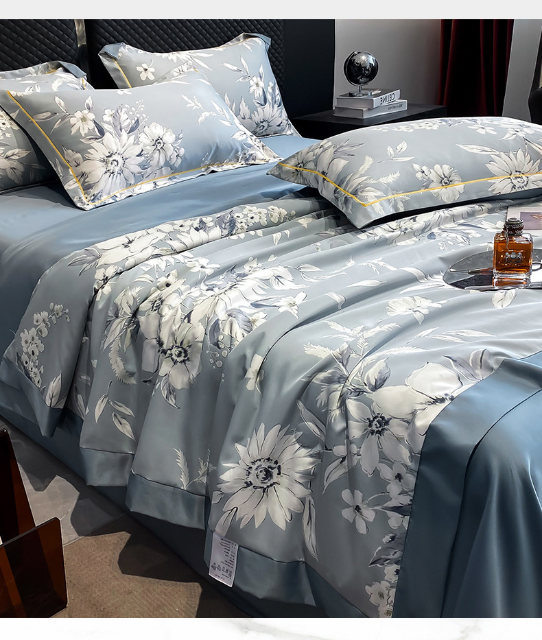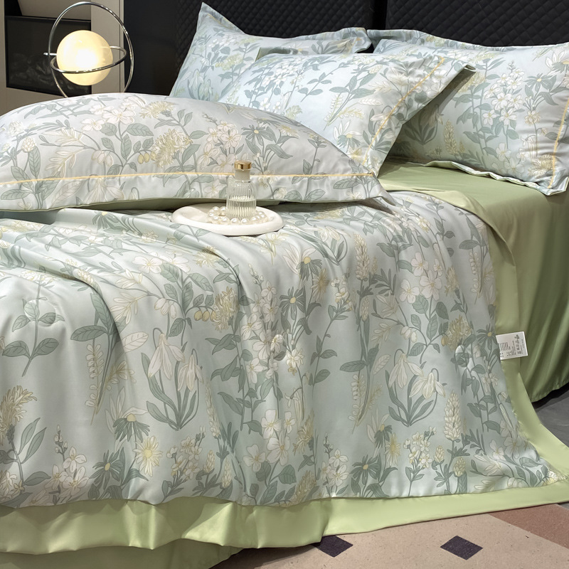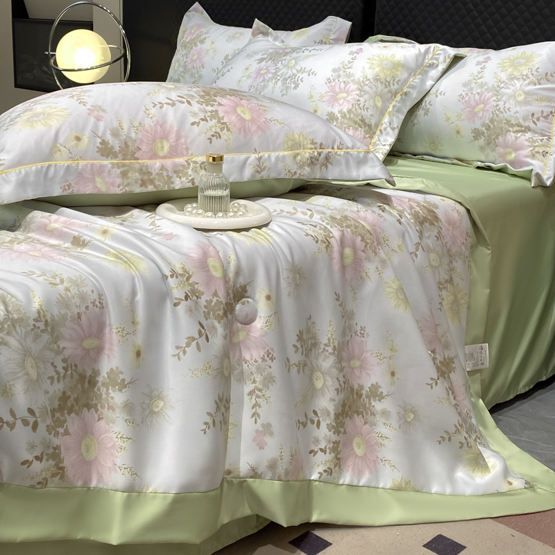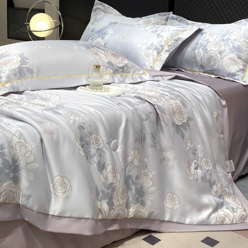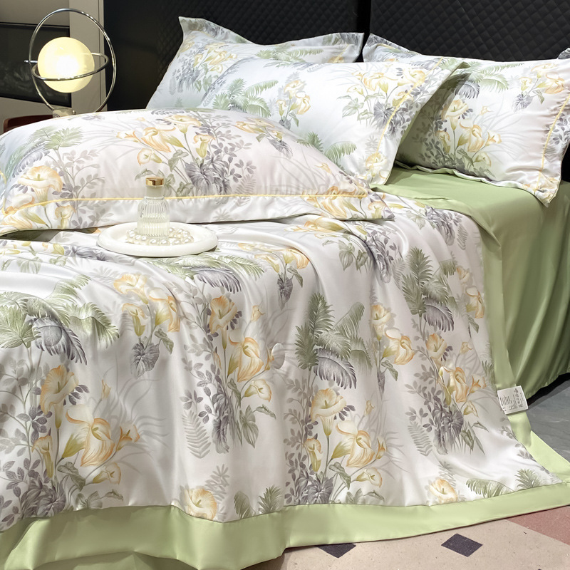 워시드 실크 여름 이불 4피스 세트 라이트 럭셔리 스타일 여름 텐셀 여름 이불 시원한 실크 아이스 실크 에어컨 얇은 이불