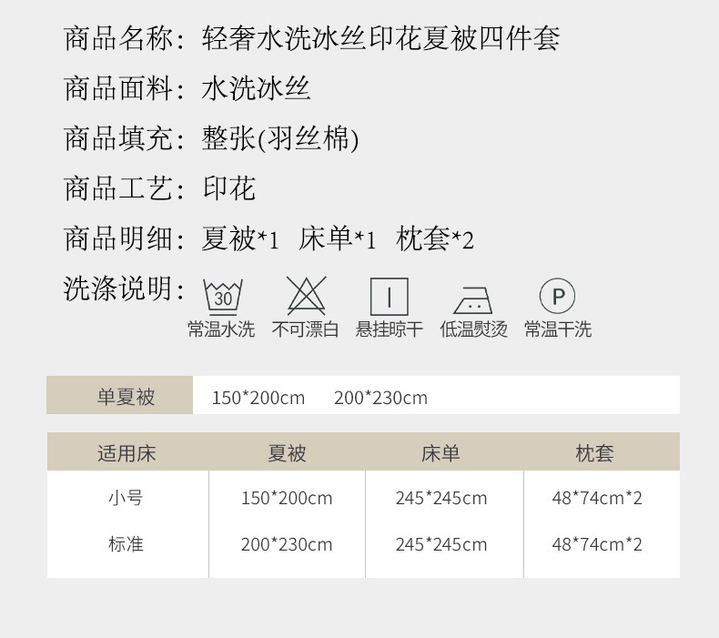 • 150*200cm 여름이불 4종세트 [여름이불+침대시트+베갯잇 2개]