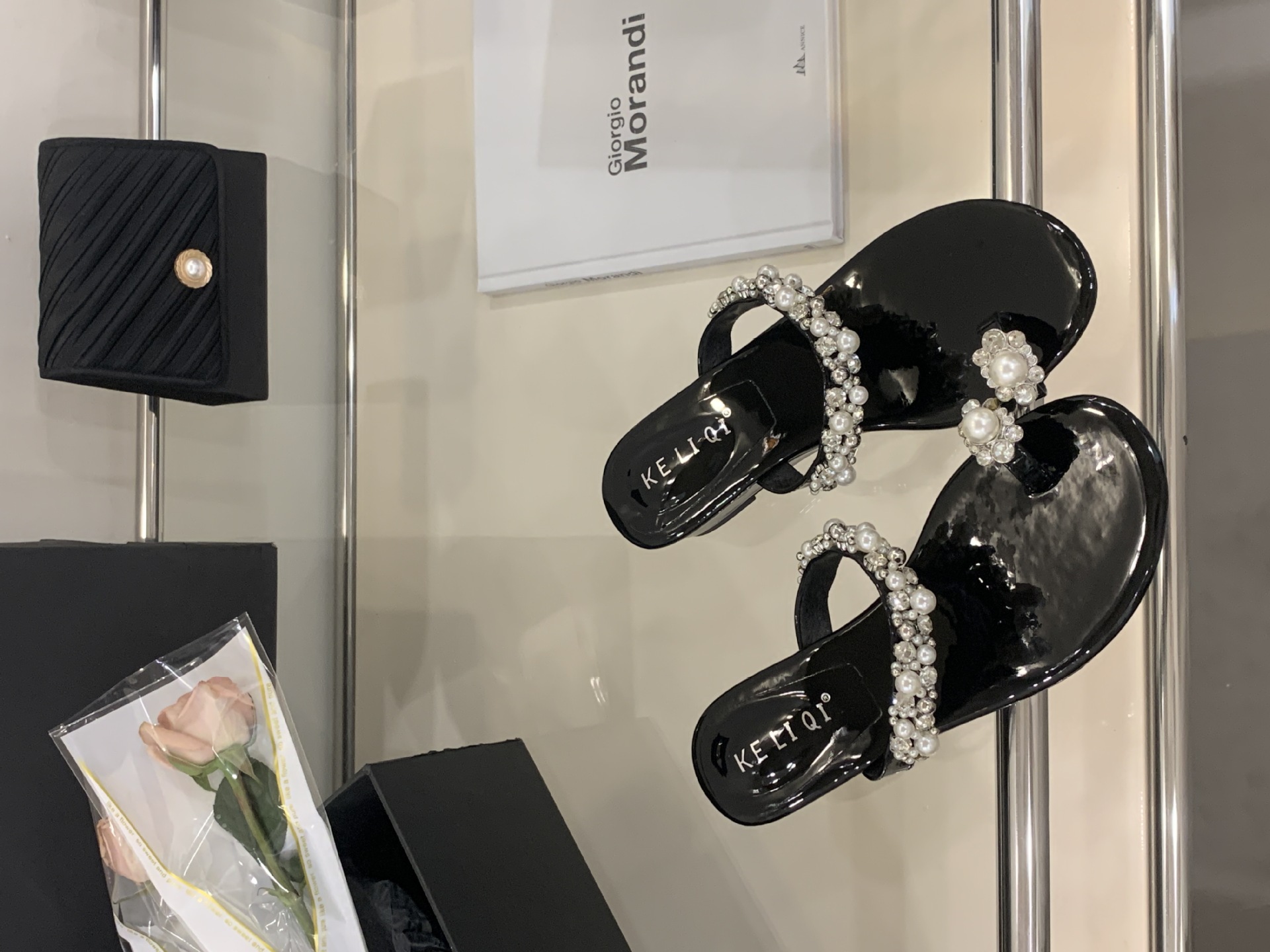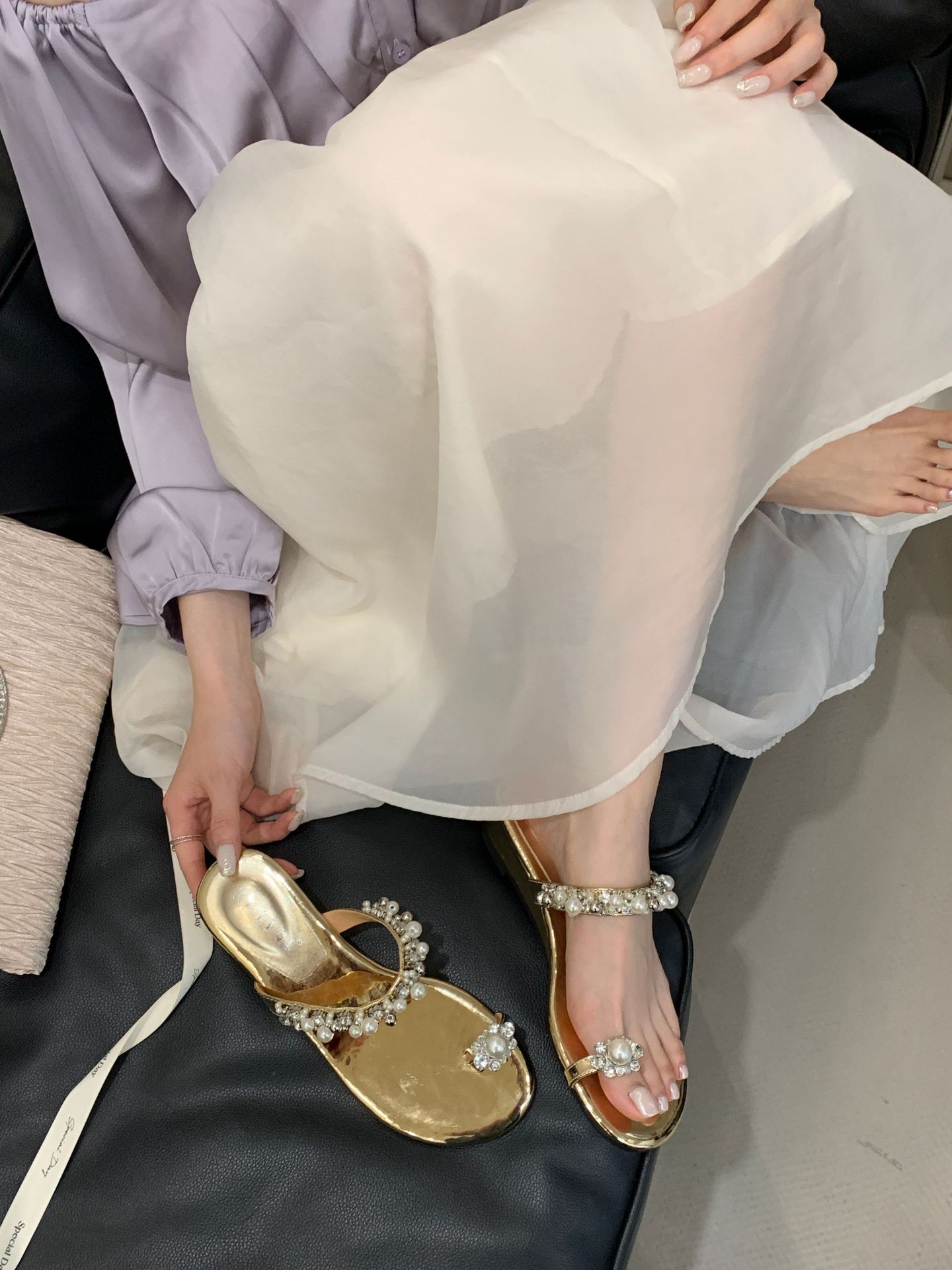 2025 새로운 Bowknot 라인 석 플립 플롭 비치 패션 샌들 여성 여름 겉옷 웨지 힐 요정 스타일 샌들스토어 가기