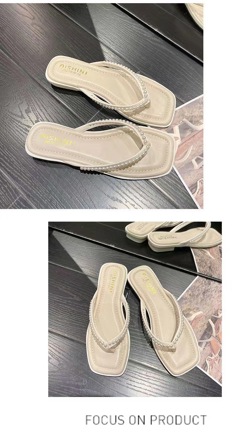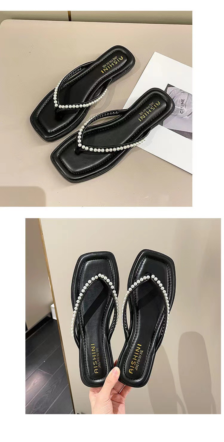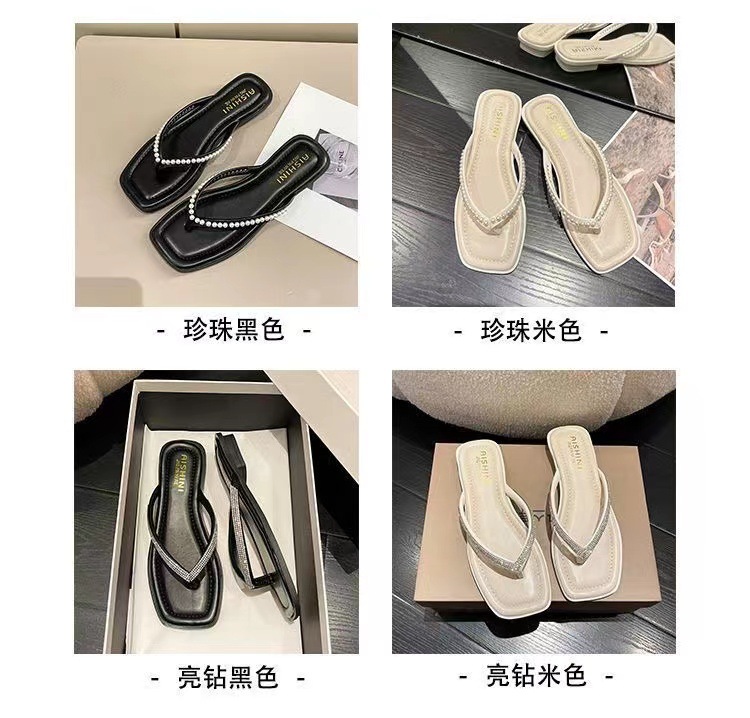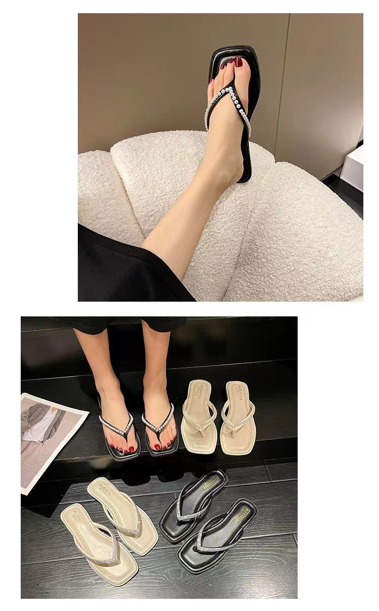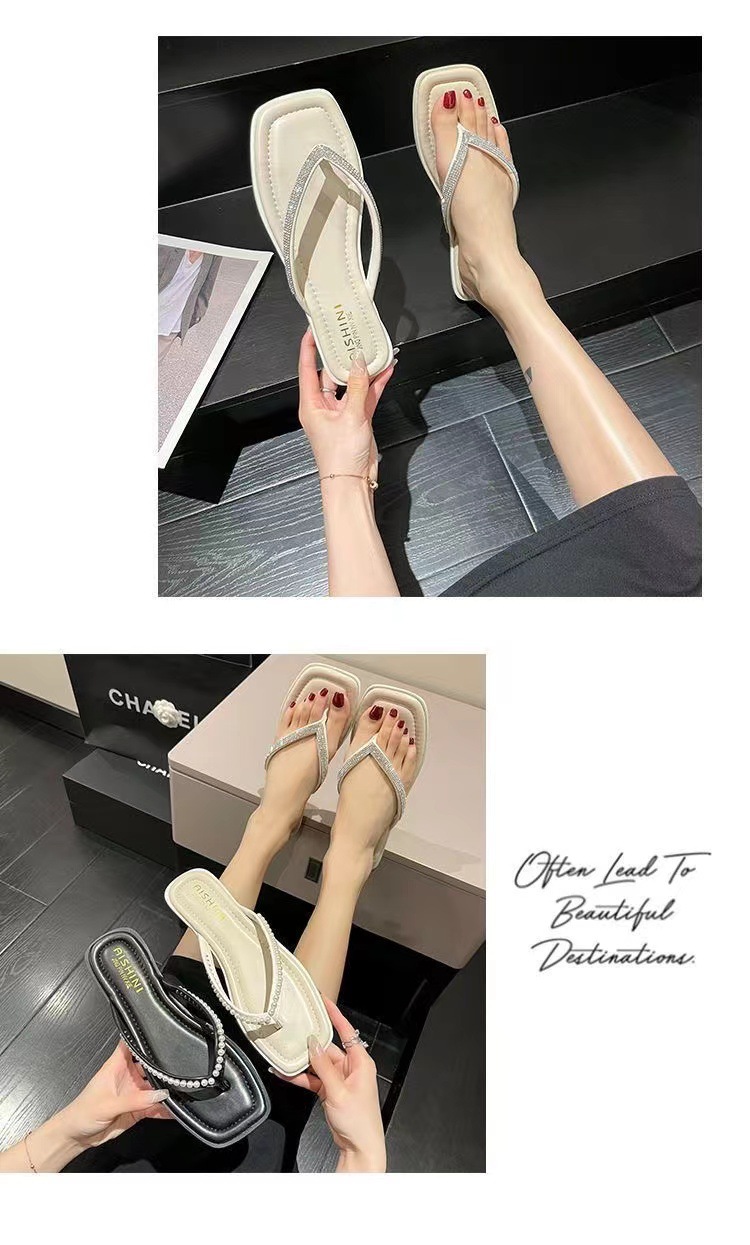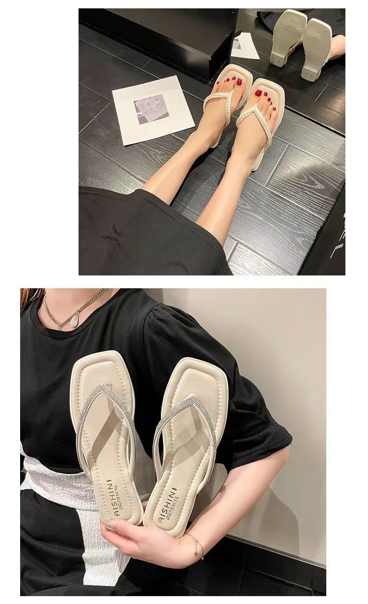 여성용 여름 아우터 슬리퍼 2025 새로운 요정 스타일 인터넷 연예인 라인스톤 스퀘어 토 비치 두꺼운 굽 슬리퍼스토어 가기