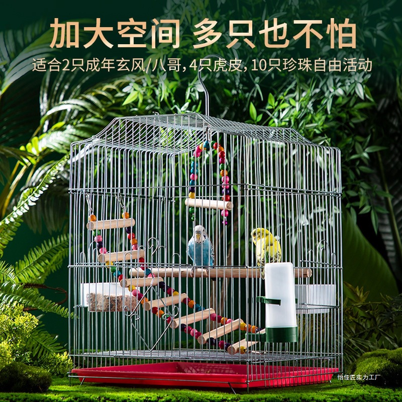 조류 케이지, 앵무새 케이지, 대형 전기 도금 스테인레스 스틸 컬러 금속 케이지, 호랑이 피부 검은 까마귀 새장, 번식 케이지스토어 가기