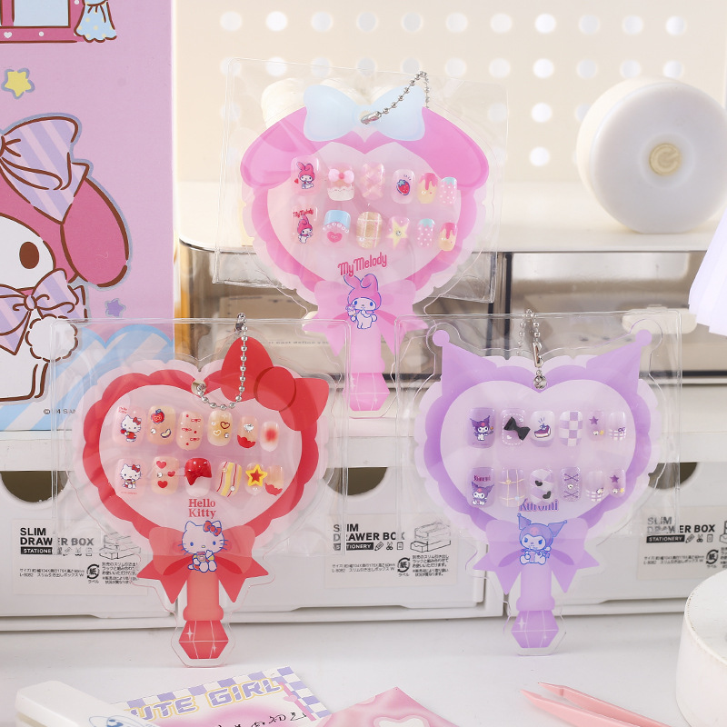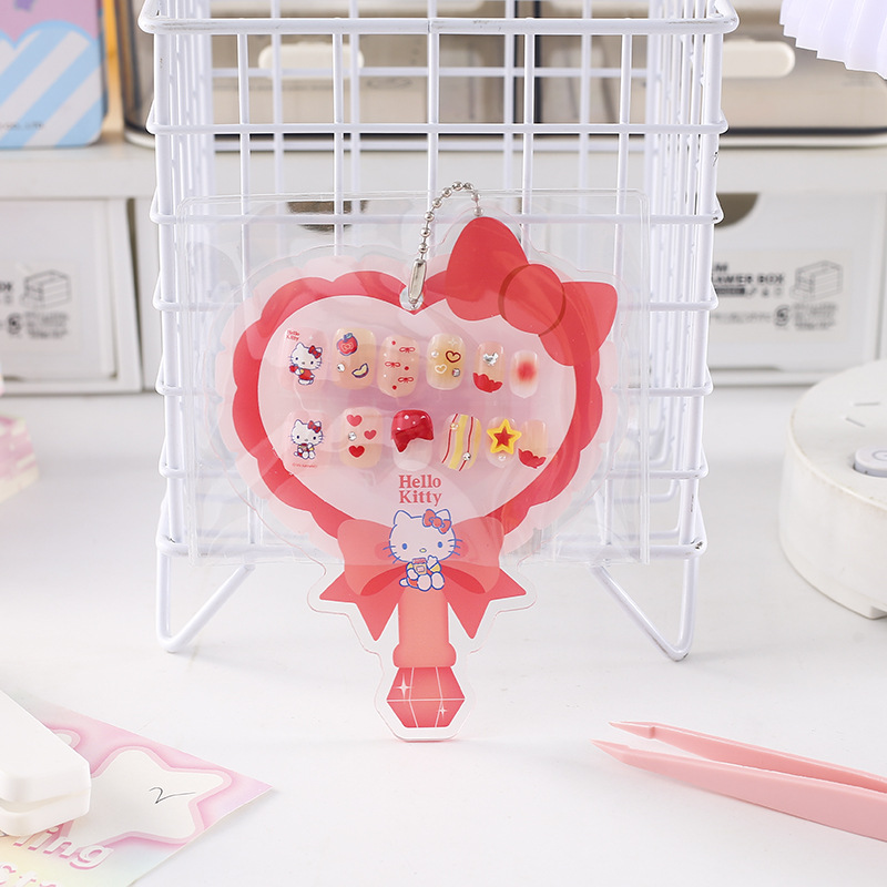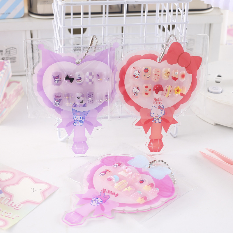 산리오 마술 지팡이 웨어러블 네일, 고급스러운 정품 핸드메이드 DIY 탈착식 네일 스티커, 소녀들을 위한 귀여운 짧은 네일스토어 가기