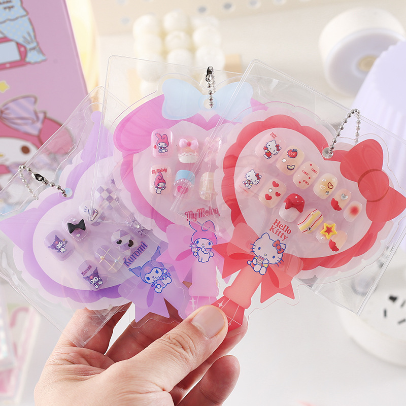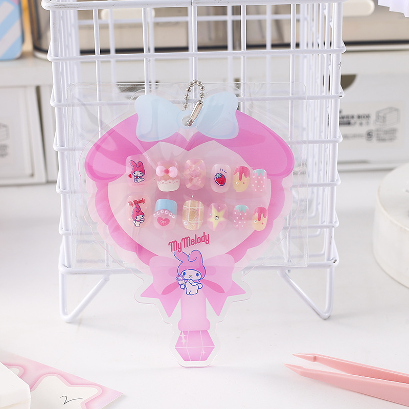 산리오 마술 지팡이 웨어러블 네일, 고급스러운 정품 핸드메이드 DIY 탈착식 네일 스티커, 소녀들을 위한 귀여운 짧은 네일