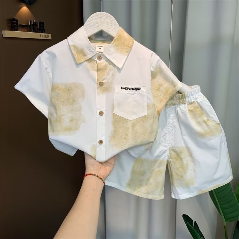 소년 여름 셔츠 반팔 양복 2025 새로운 어린이 아기 여름 얇은 캐주얼 양복스토어 가기