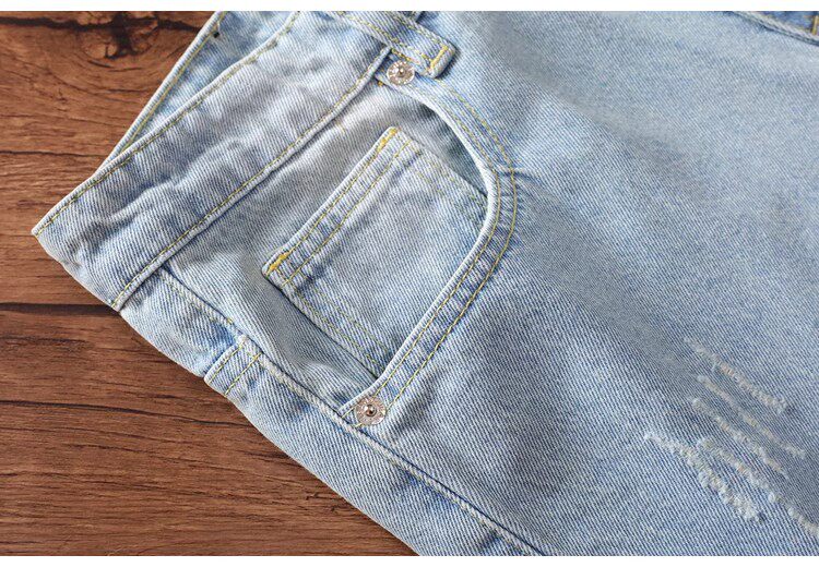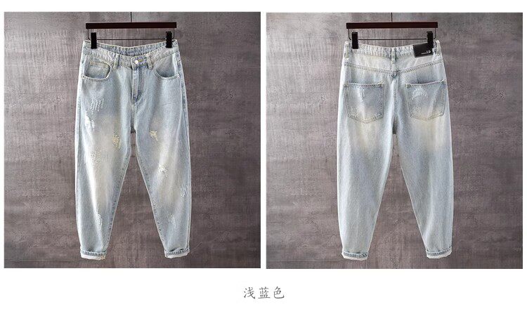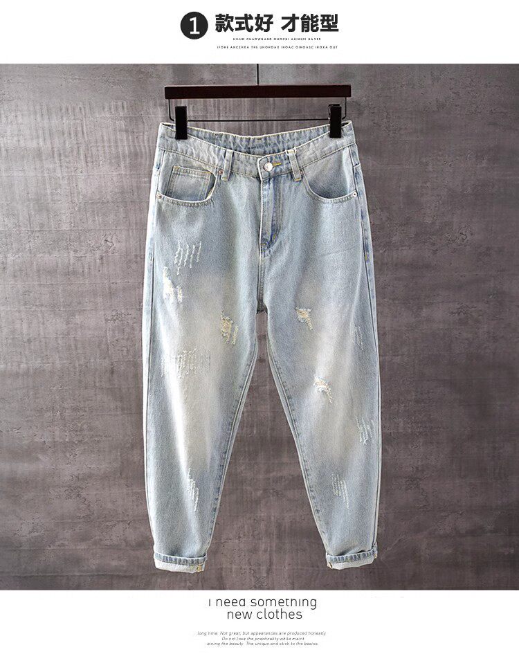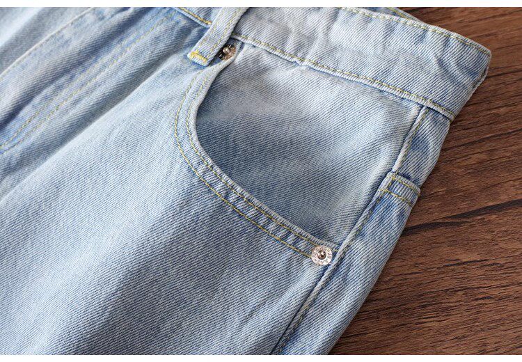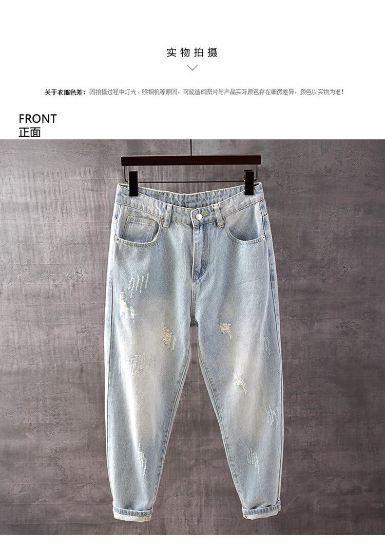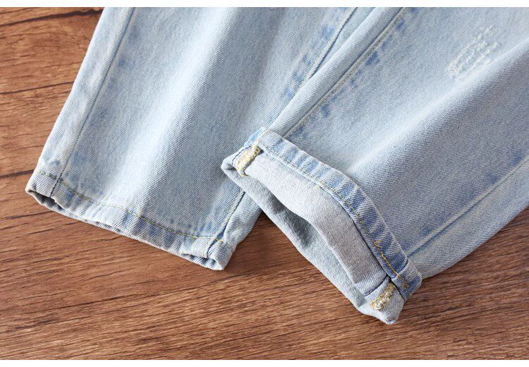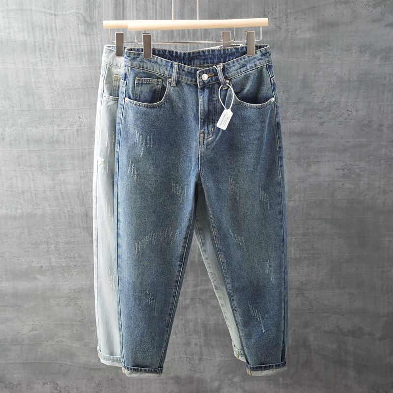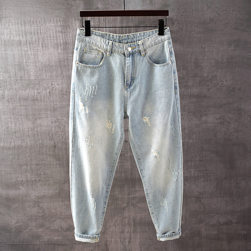 트렌디 브랜드 레트로 청바지 남성 루즈 스트레이트 캐주얼 라이트 컬러 스크래치 다용도 봄 여름 마이크로 하렘 9부 팬츠스토어 가기