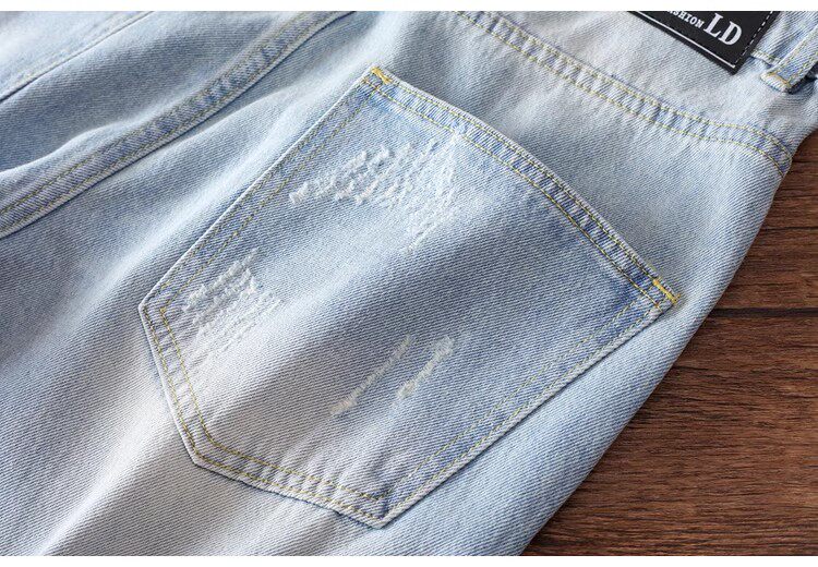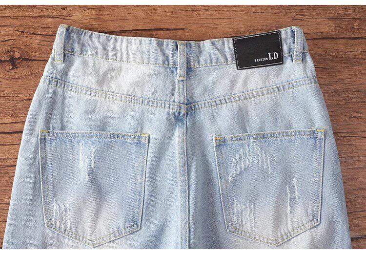 트렌디 브랜드 레트로 청바지 남성 루즈 스트레이트 캐주얼 라이트 컬러 스크래치 다용도 봄 여름 마이크로 하렘 9부 팬츠