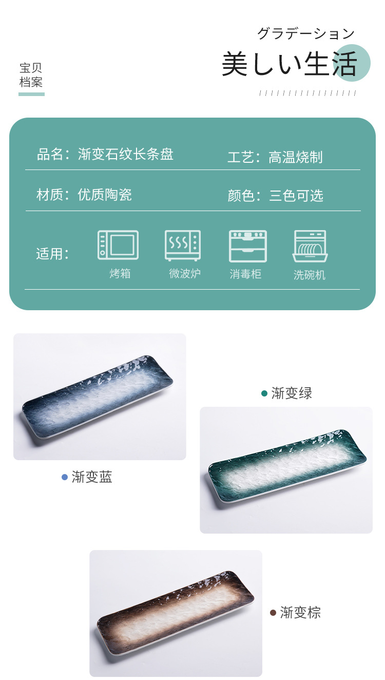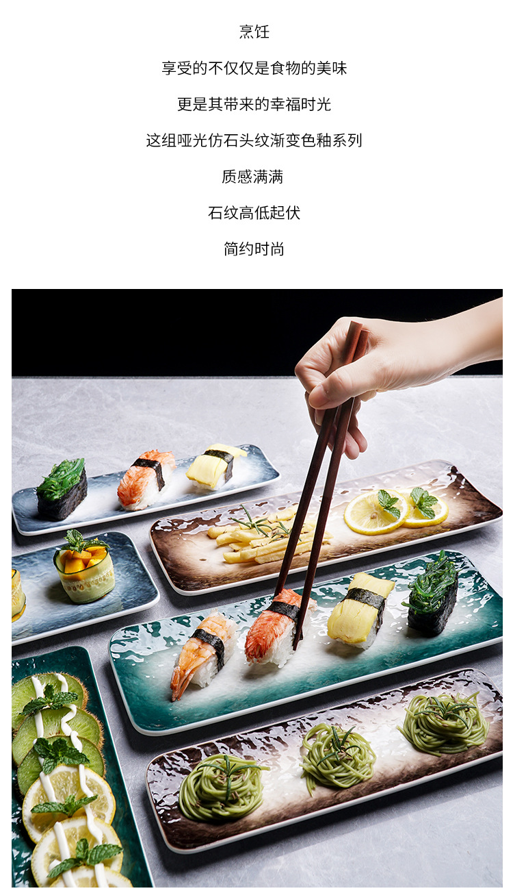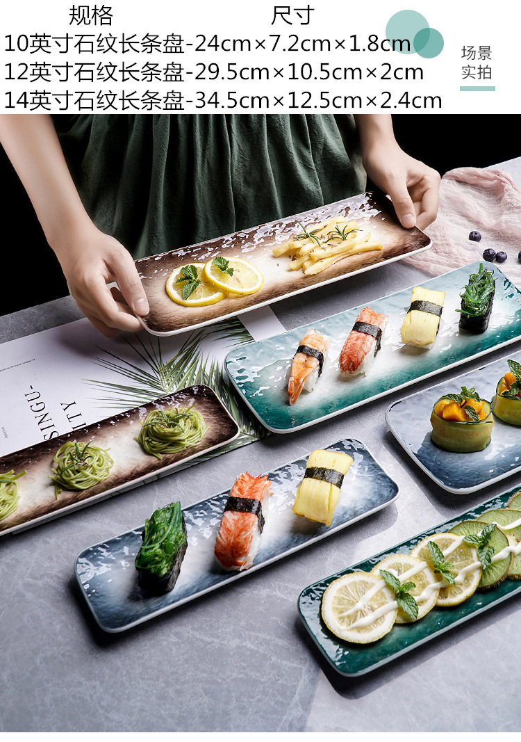 일본 스시 접시, 긴 접시, 디저트 접시, 창작 스낵 접시, 서양 음식 접시, 사시미 접시, 긴 접시, 일본식 Pengquan