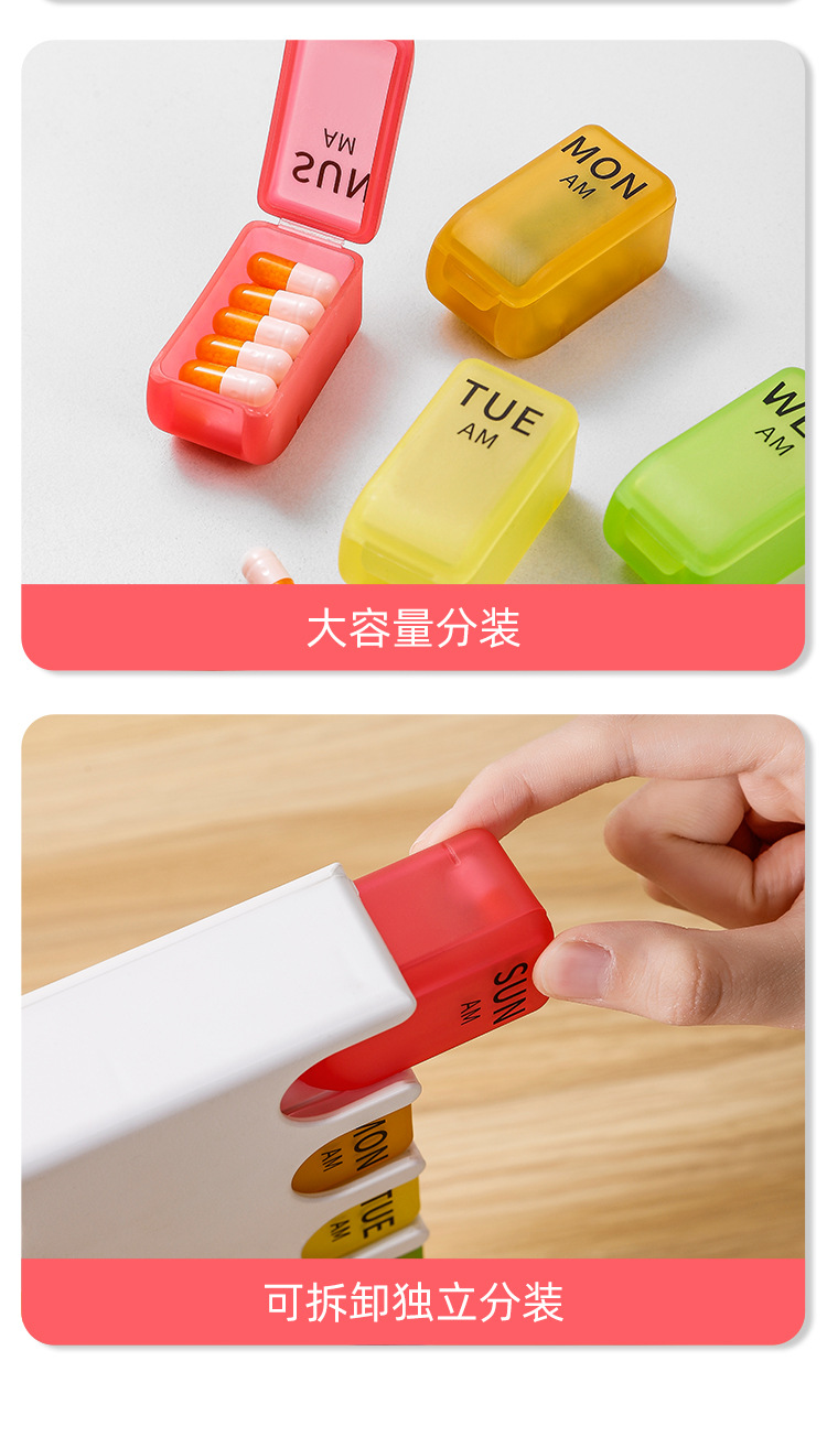 새로운 약 상자, 휴대용 밀봉 및 방습 소형 약 상자, 칸막이가 있고 냄새가 나지 않음, 일주일간 약 포장 상자 도매