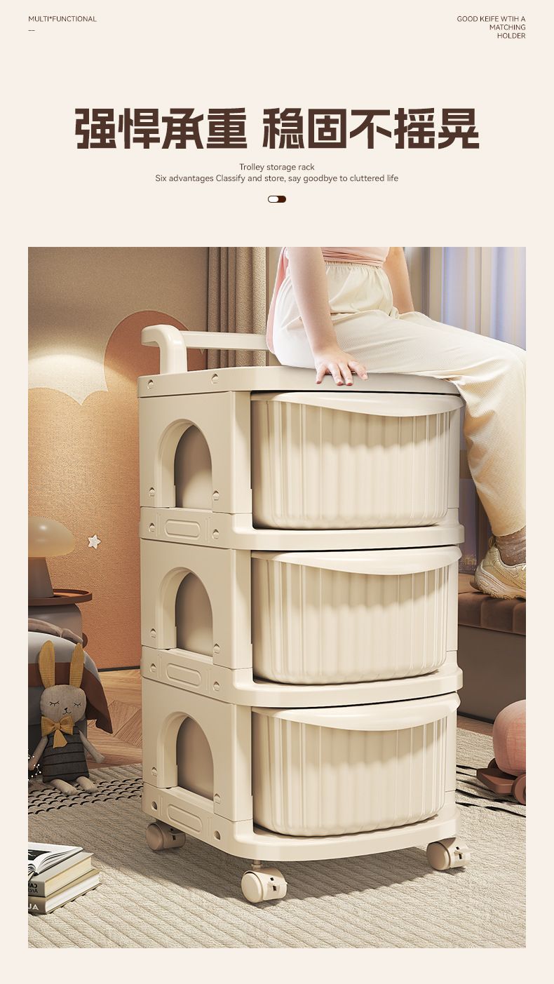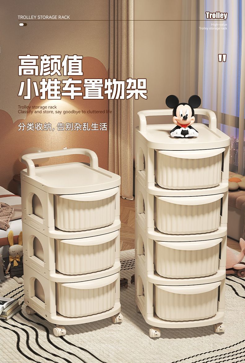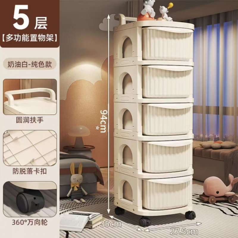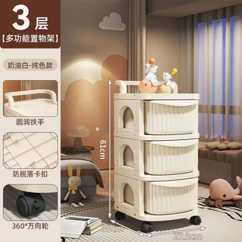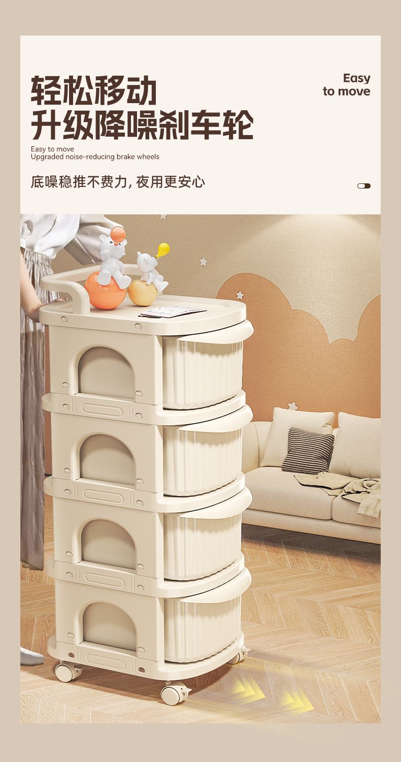 유모차 스낵 보관함 아기 용품 보관 바닥 스탠딩 모바일 아기 홈 장난감 보관함 크림