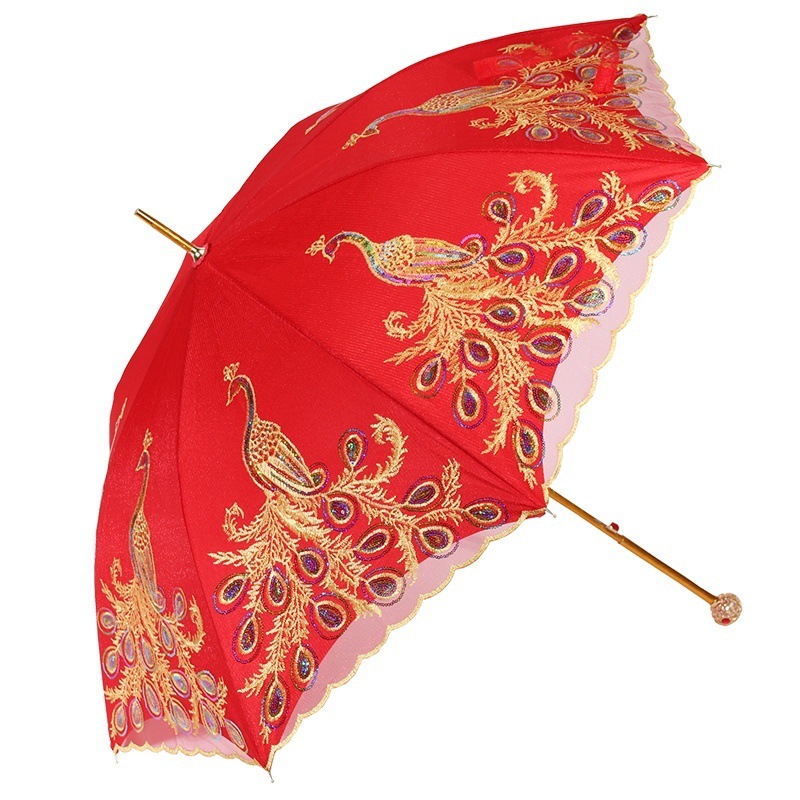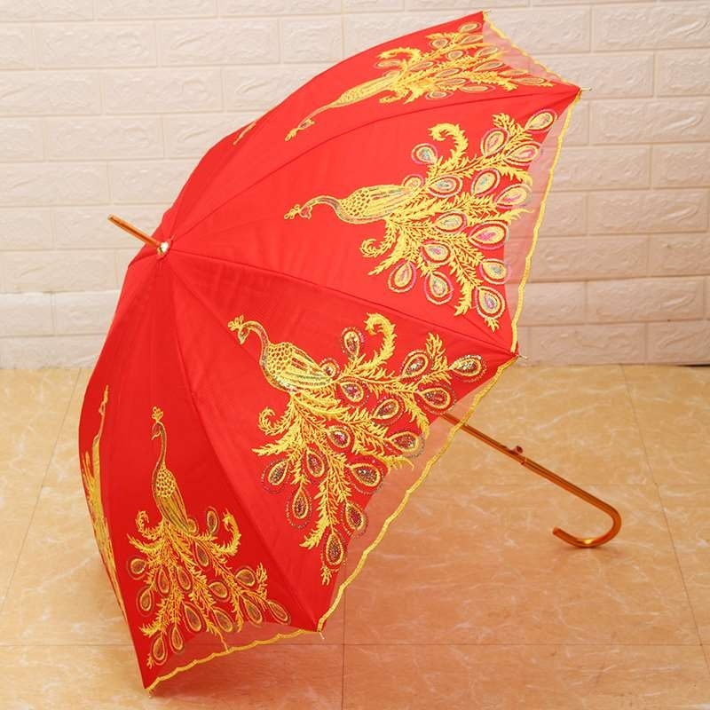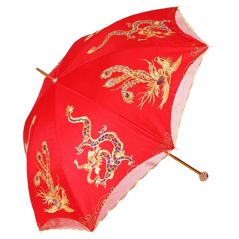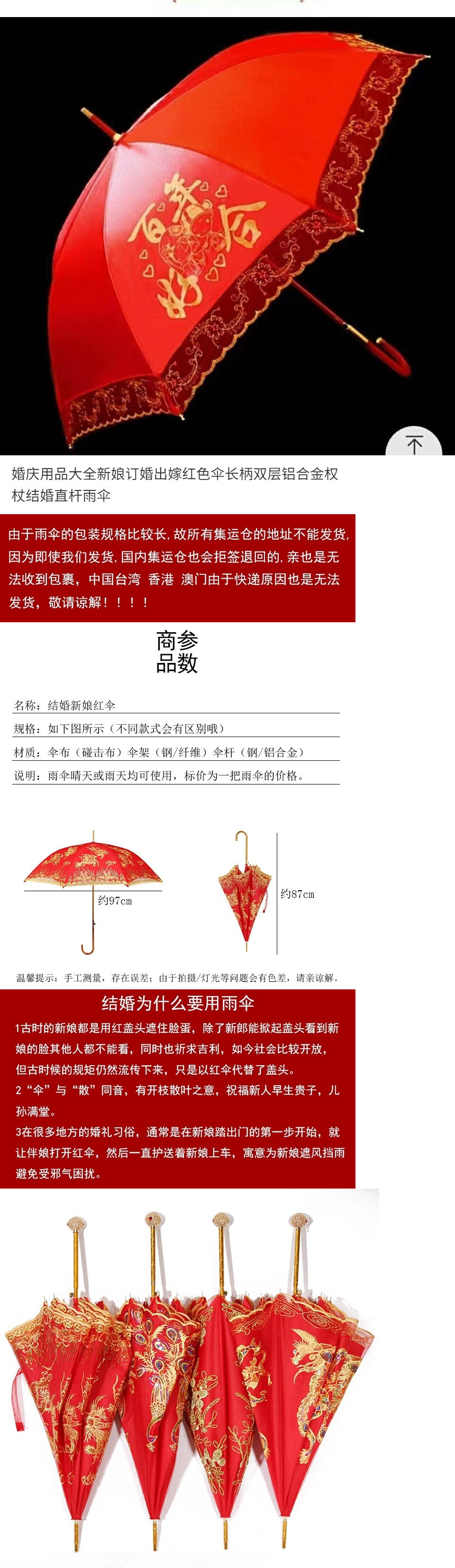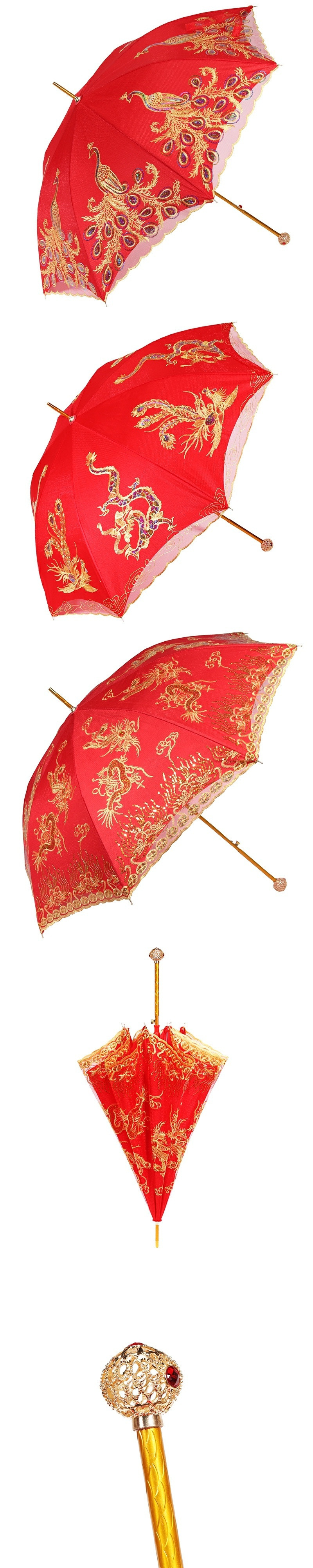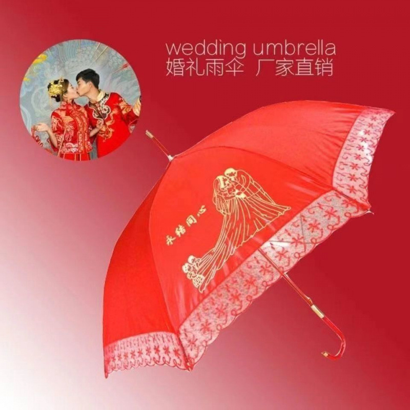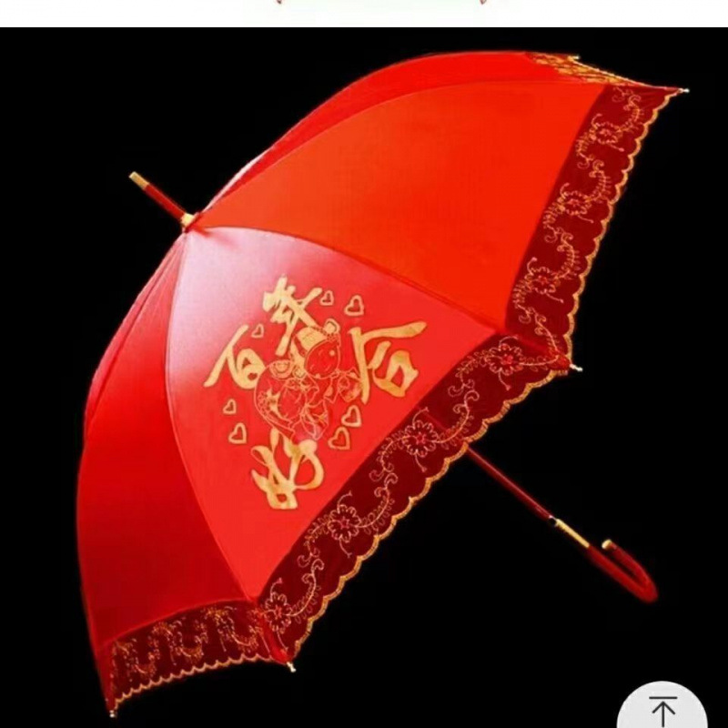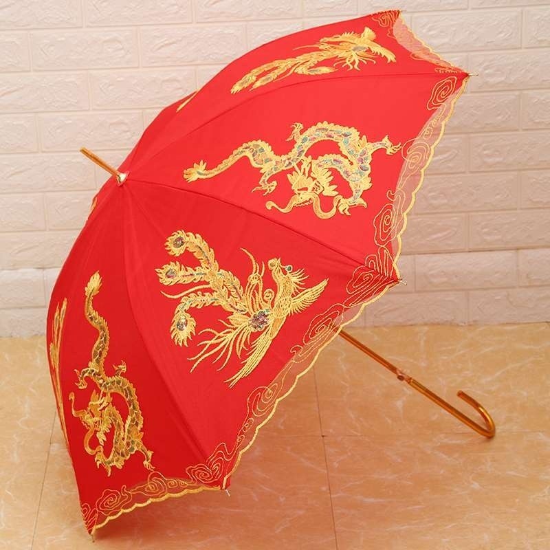 웨딩 용품 빨간 우산 매듭 중국 스타일 선물 레이스 긴 손잡이 비 복고풍 결혼식 신부 빨간색 자수 가장자리 스트레이트 스틱스토어 가기