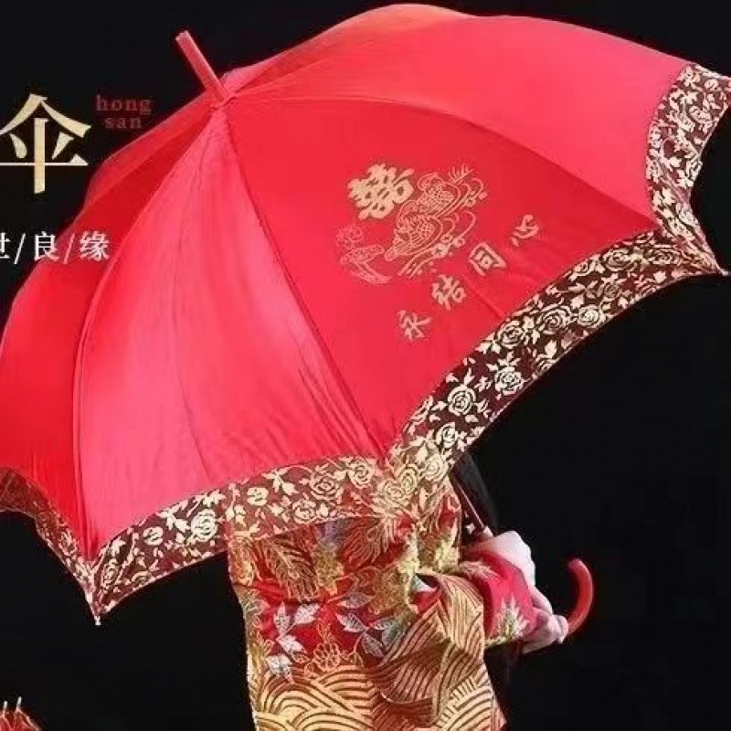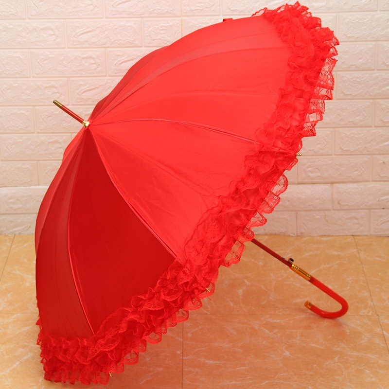웨딩 용품 빨간 우산 매듭 중국 스타일 선물 레이스 긴 손잡이 비 복고풍 결혼식 신부 빨간색 자수 가장자리 스트레이트 스틱