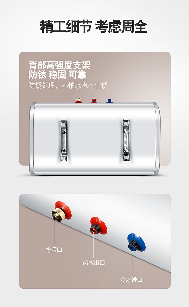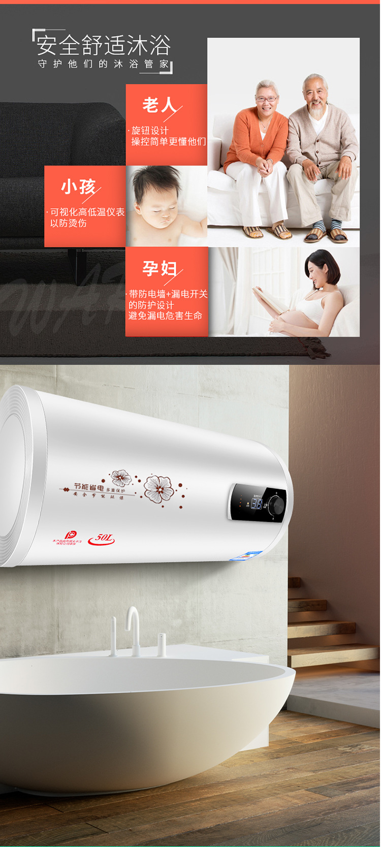 • 플랫 배럴 50리터 디지털 디스플레이 모델 + 높은 구성 + 물 배출구 및 전원 차단 기능, 정전 방지 벽 + 안전 배터리 수명을 직접 설치하세요.