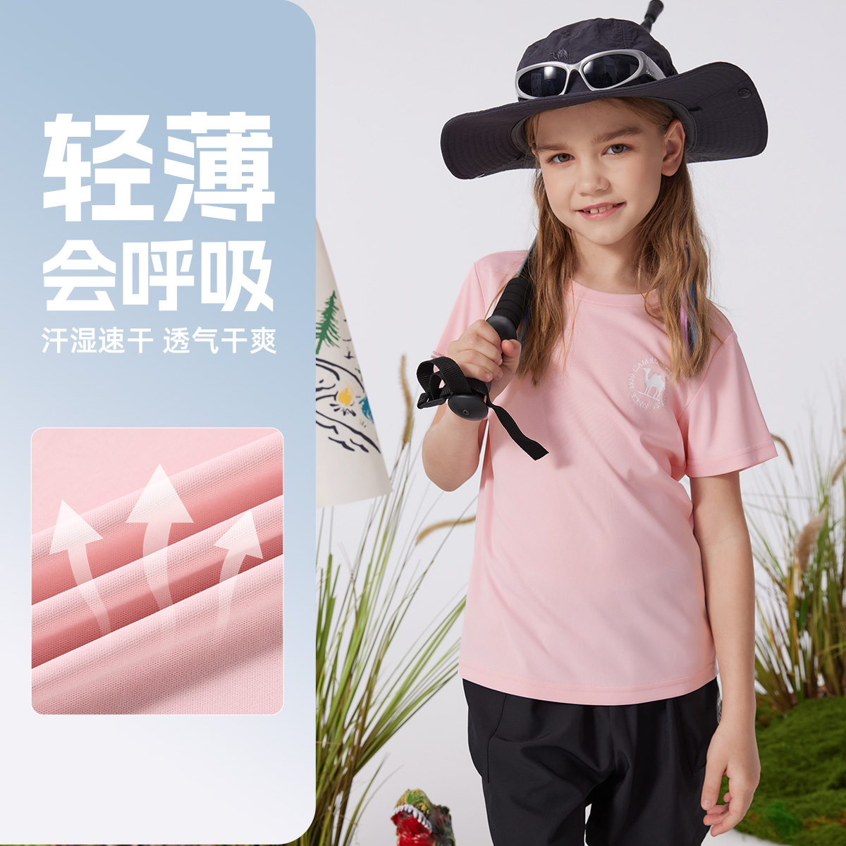 낙타 아동 의류 반팔 티셔츠 얇은 소녀 여름 2025 새로운 라운드 넥 중대형 아동 속건 의류 소년 아동상의스토어 가기