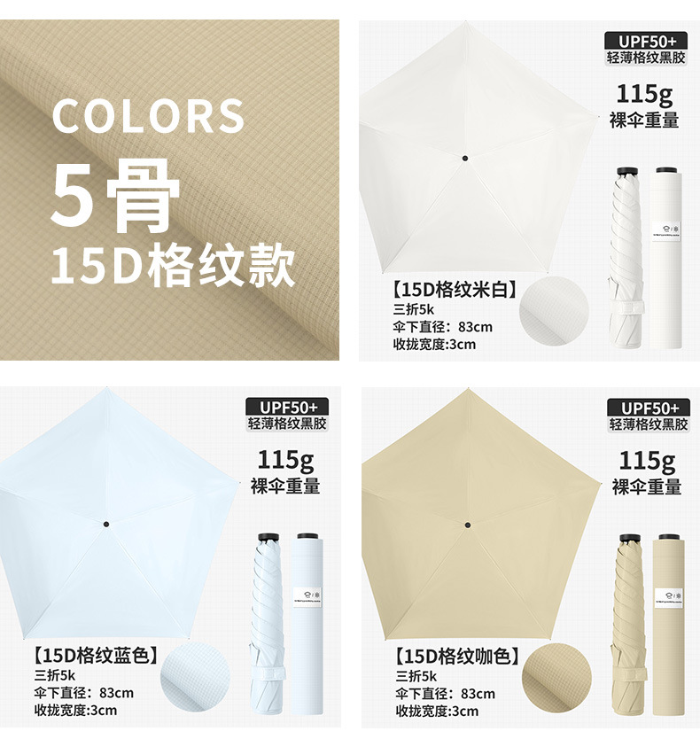 • 초경량 5본 115g - 미색 (경량 알루미늄 합금 + 15D 초박형 격자 무늬 블랙 코팅)