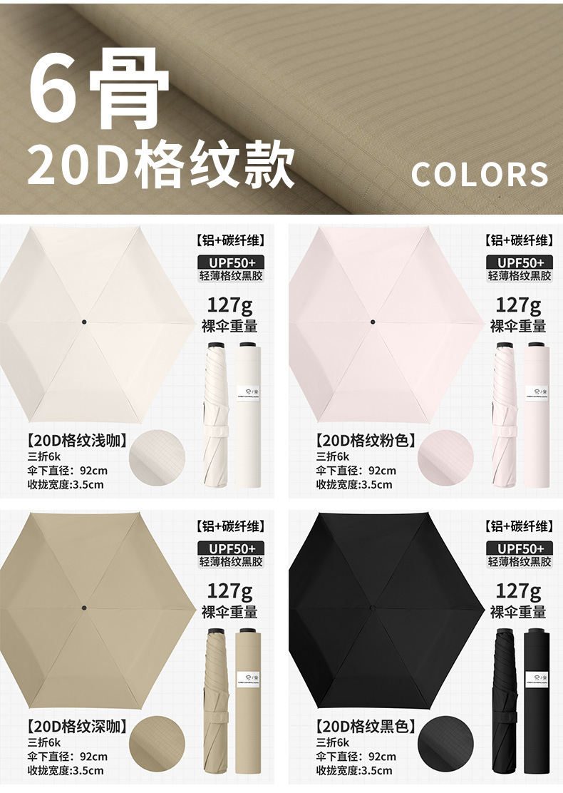 • 탄소 섬유 초경량 6본 127g - 라이트 브라운 (경량 알루미늄 합금 + 20D 초박형 격자 무늬 블랙 코팅)