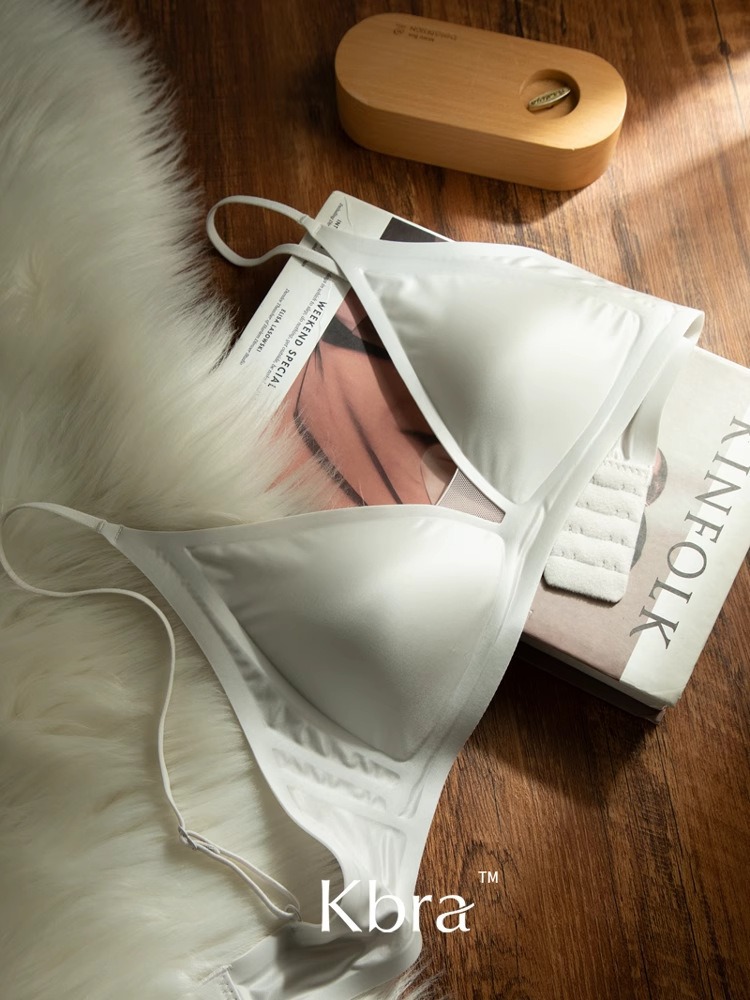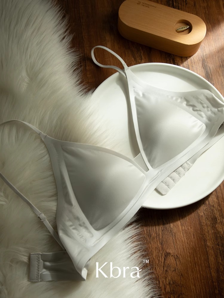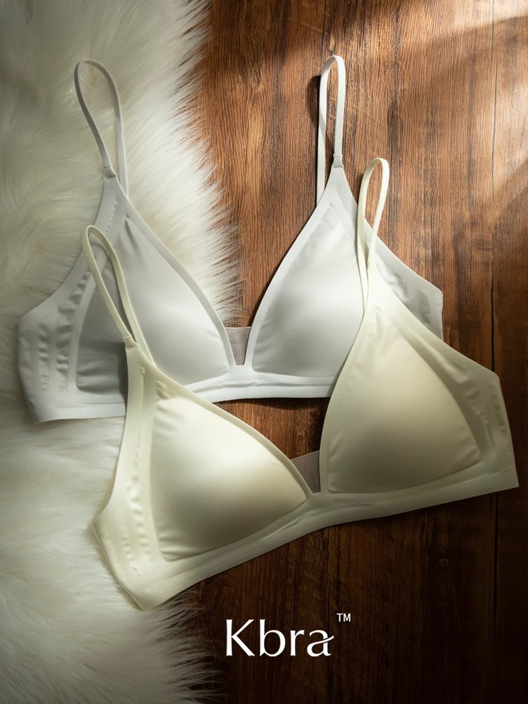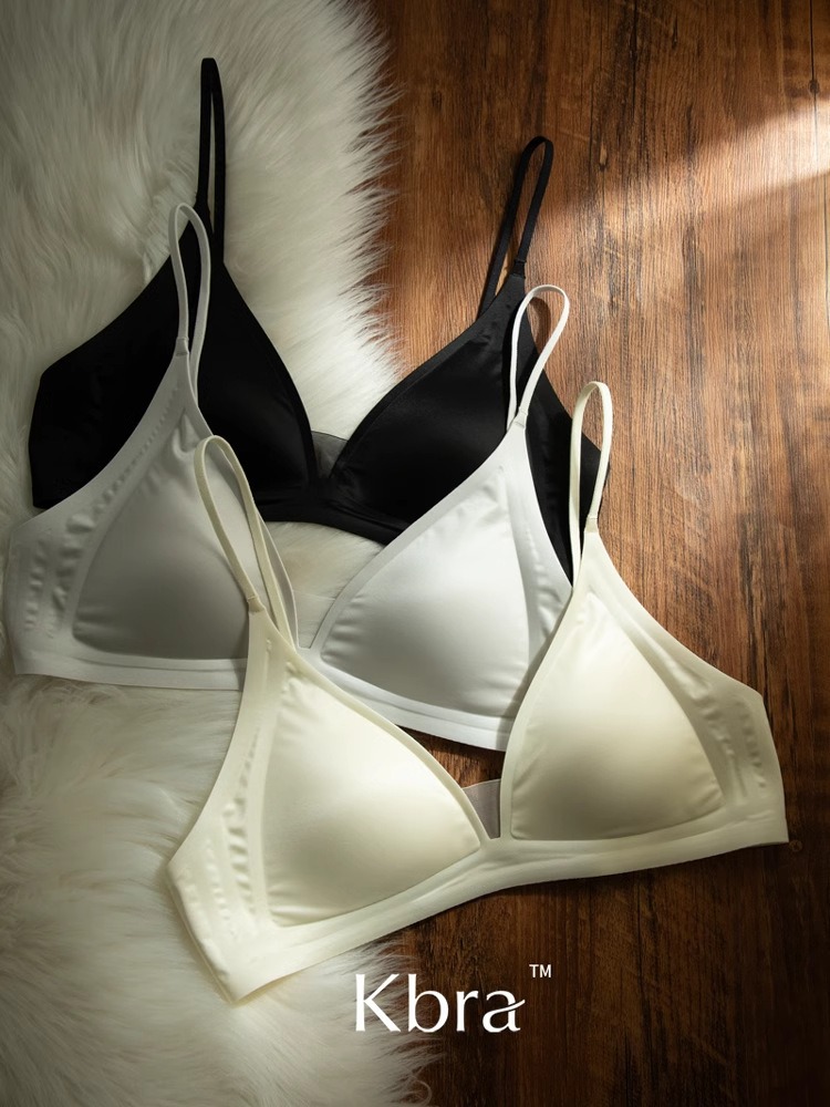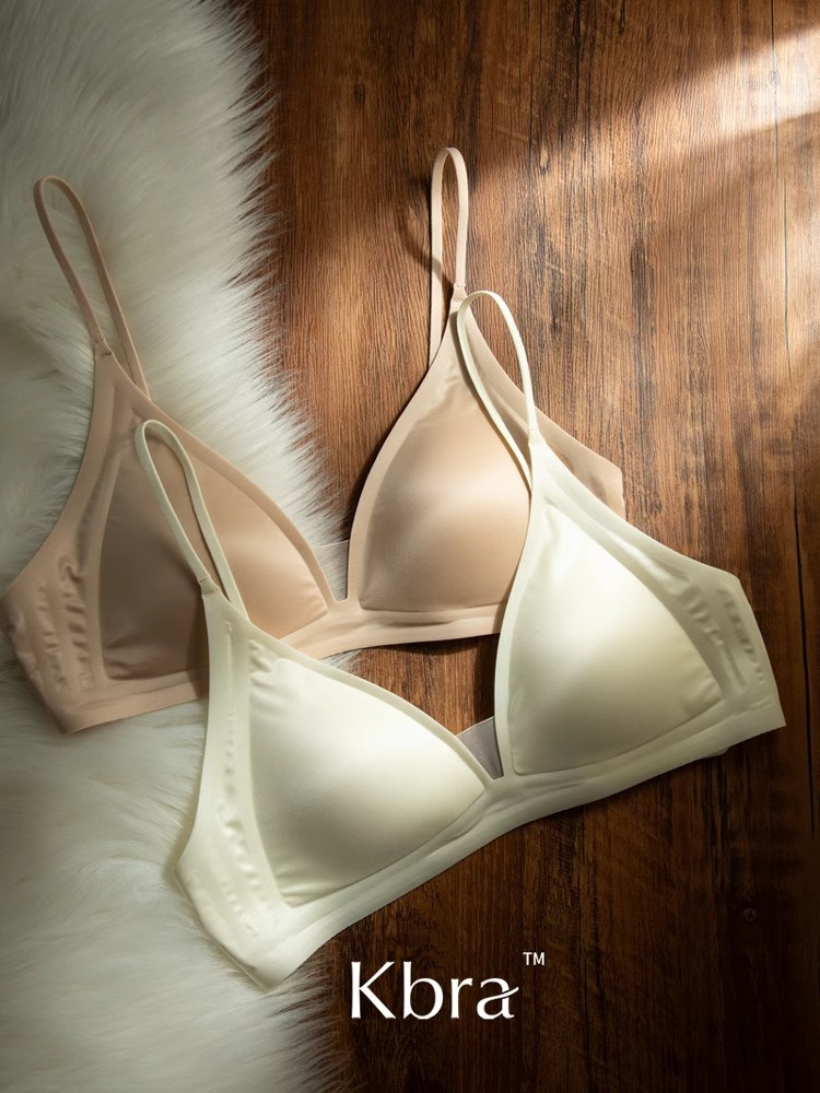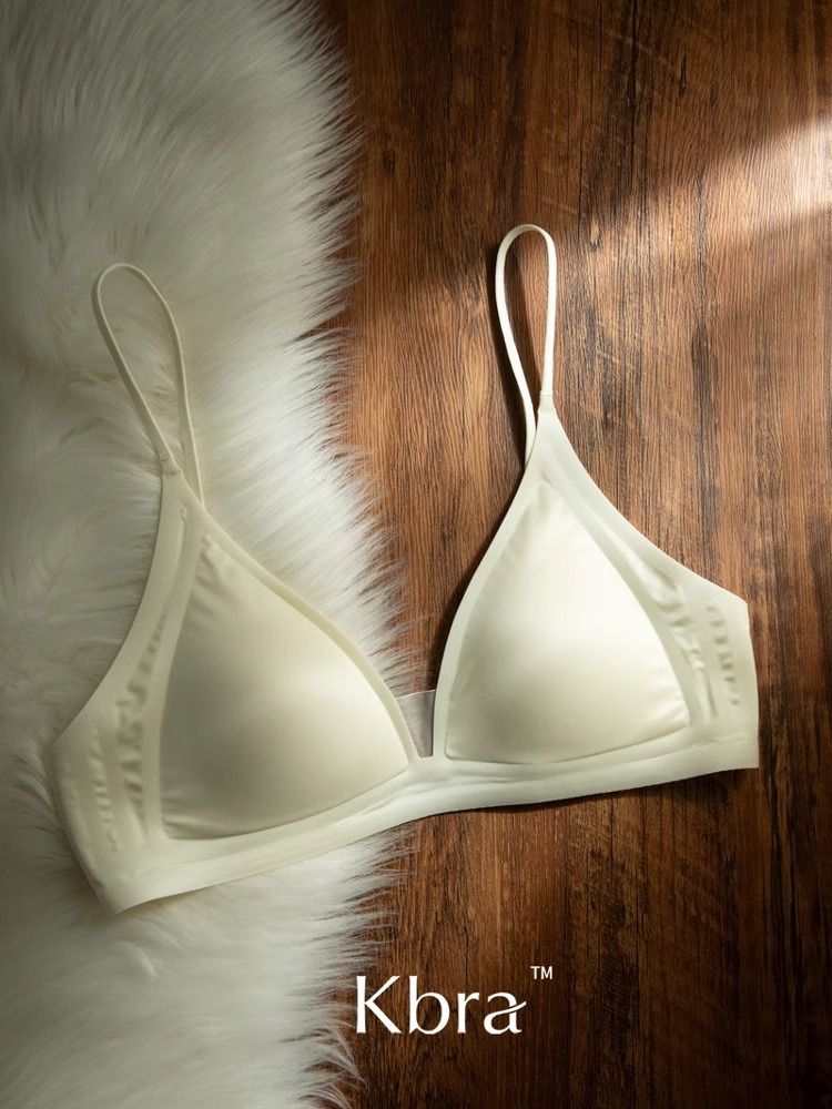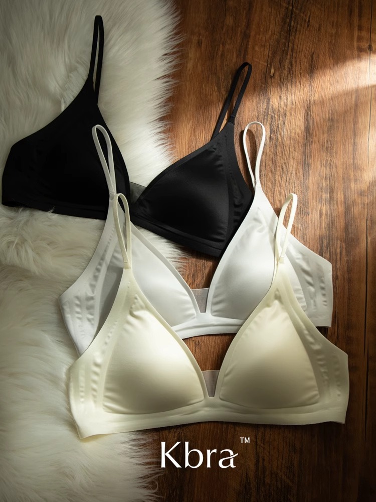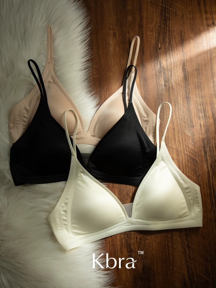 Kbra 밀크 새틴 프렌치 딥 브이넥 속옷 여성 여름 스파게티 스트랩 심리스 트라이앵글 컵 작은 가슴 와이어 프리 브라 얇은스토어 가기