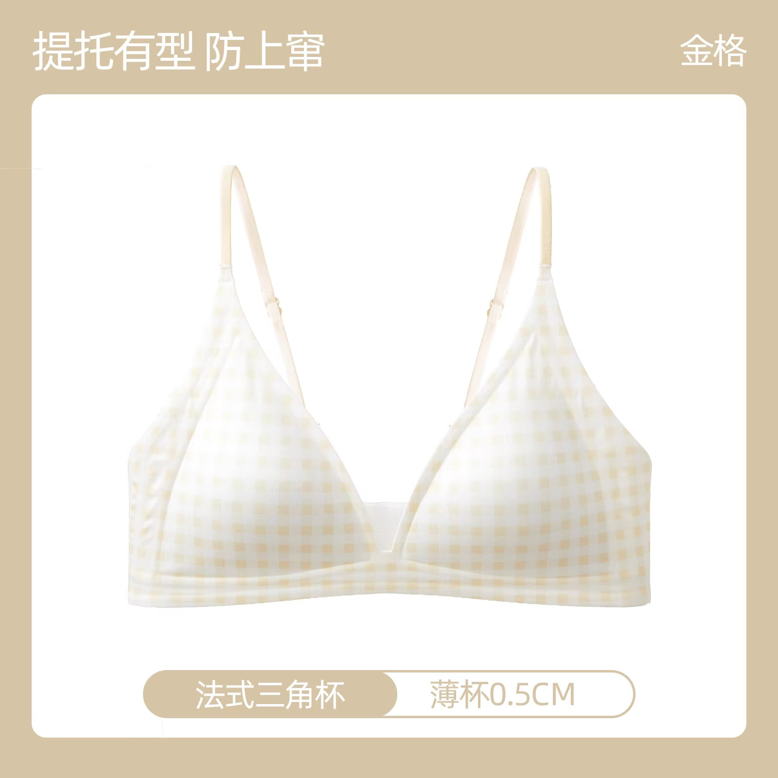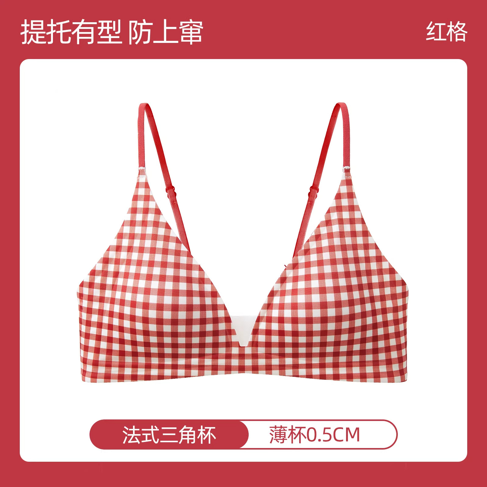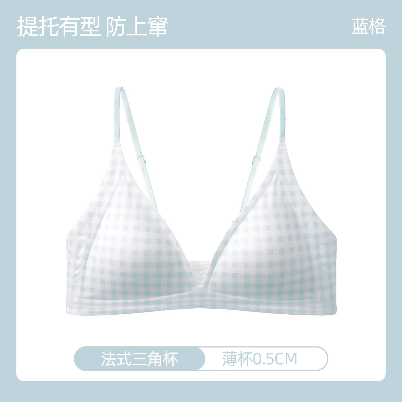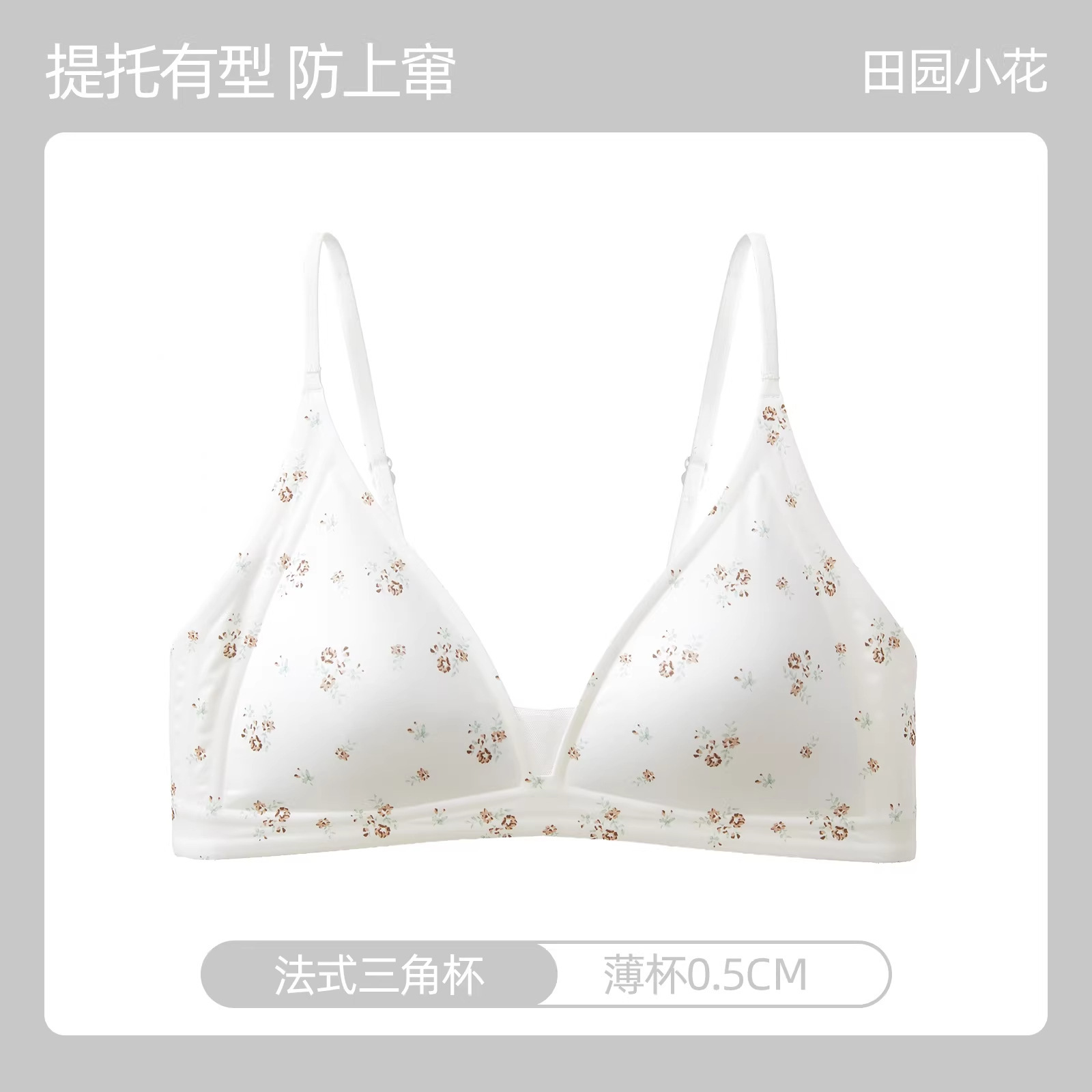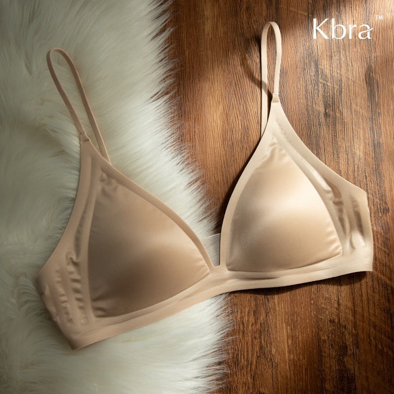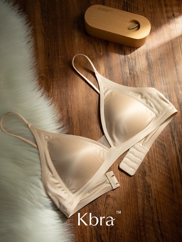 Kbra 밀크 새틴 프렌치 딥 브이넥 속옷 여성 여름 스파게티 스트랩 심리스 트라이앵글 컵 작은 가슴 와이어 프리 브라 얇은스토어 가기