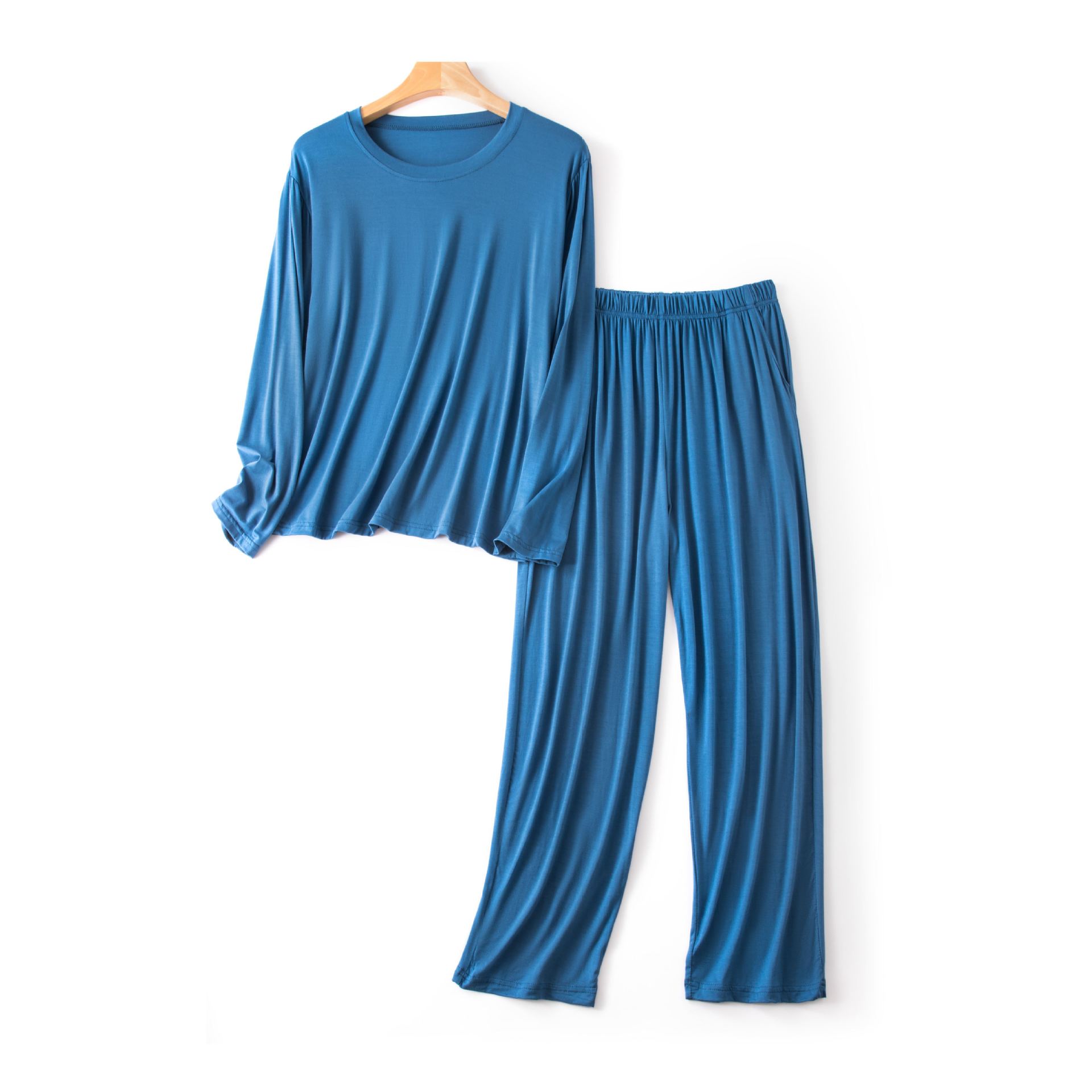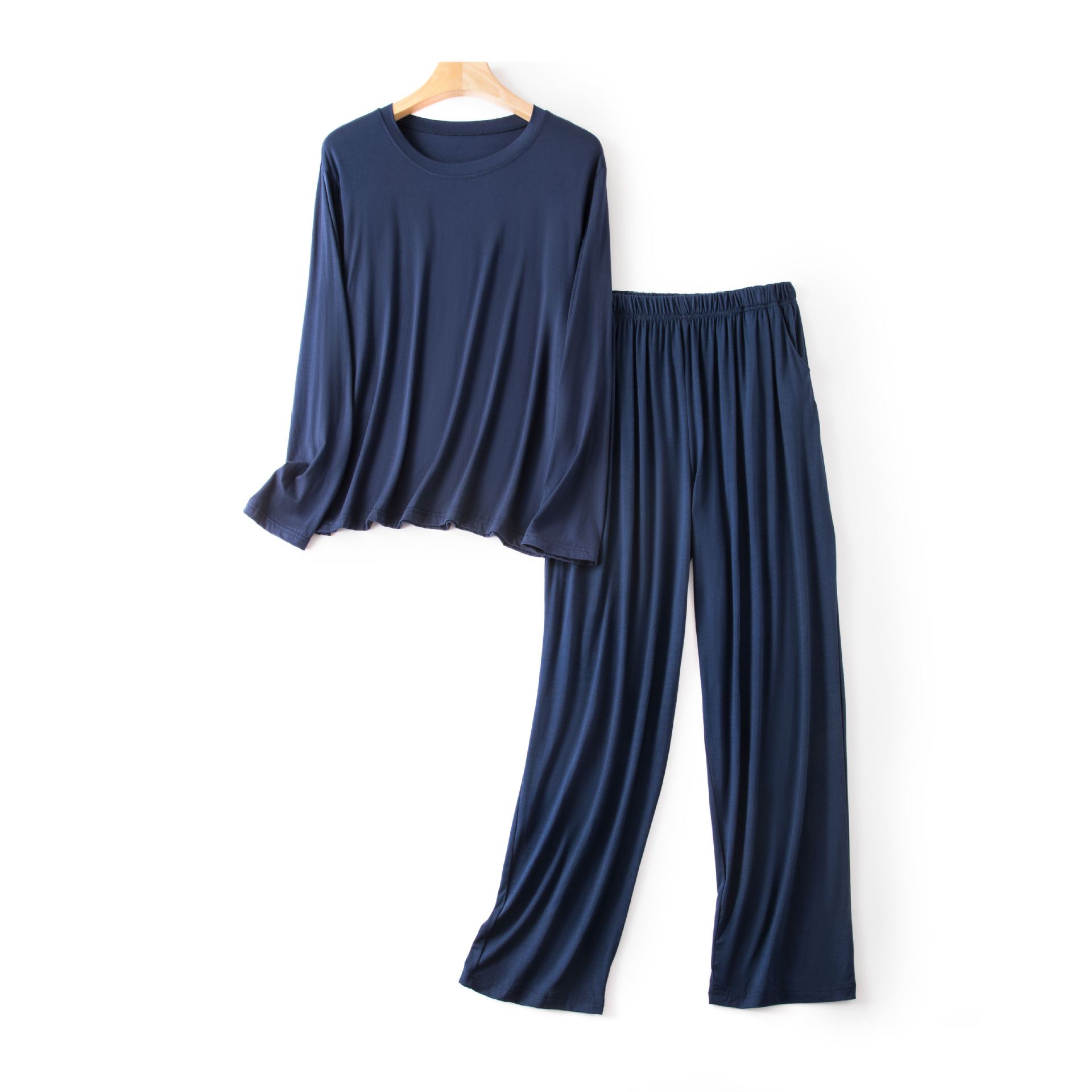 모달 파자마 남성용 2025 봄 이너 긴팔 티셔츠 바지 남성용 홈웨어 세트 외부 착용 가능