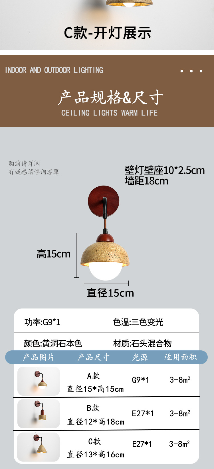 • C형 벽등 - 3색 디밍