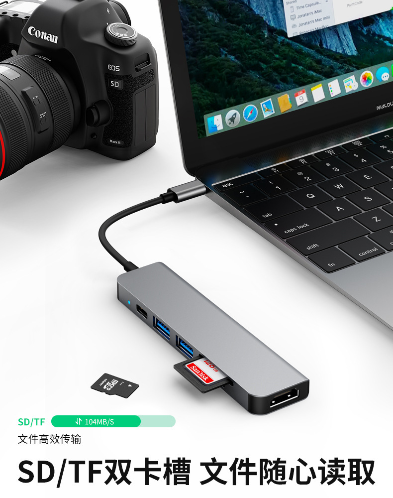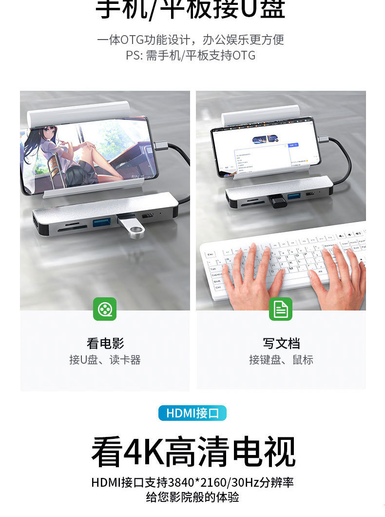 타입-C 확장 도크 6-in-1 노트북 데스크탑 허브 멀티포트 허브 HDMI 확장 도크 고화질스토어 가기