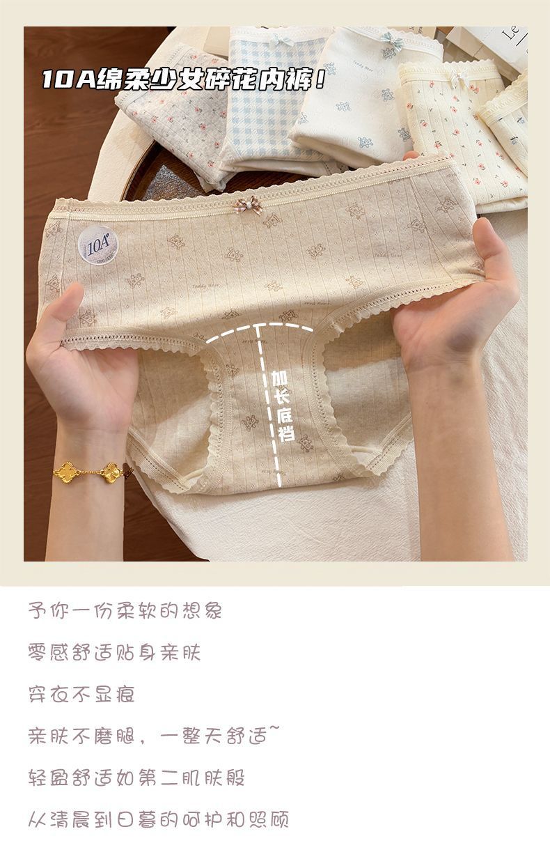 달콤한 꽃 7a 항균 속옷 여성 순수 코튼 팬티 2025 새로운 Bowknot 순수 욕망 반바지스토어 가기