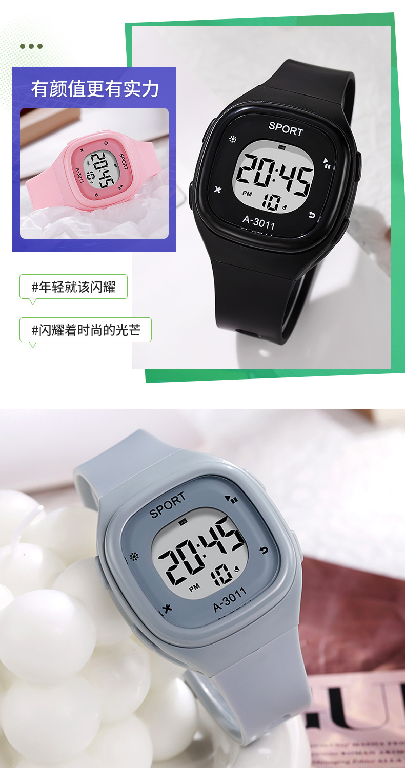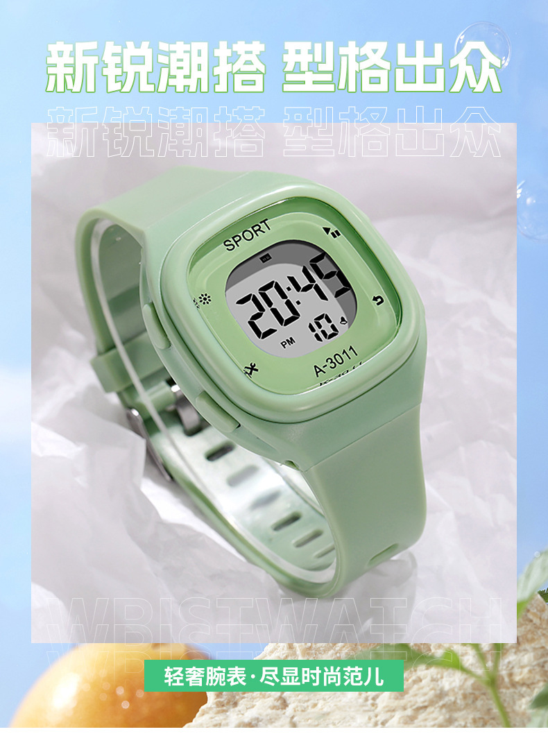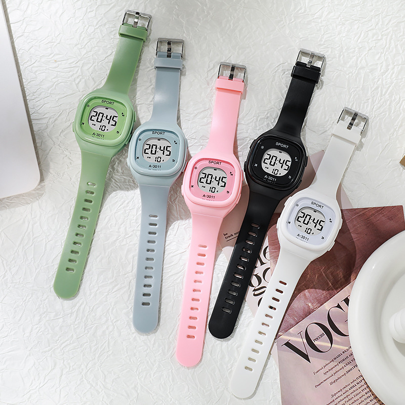 국경 새로운 작은 광장 전자 시계 남자와 여자 한국 스타일 간단한 패션 학생 전자 시계스토어 가기