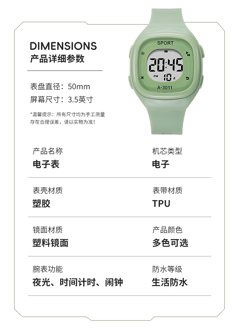 국경 새로운 작은 광장 전자 시계 남자와 여자 한국 스타일 간단한 패션 학생 전자 시계